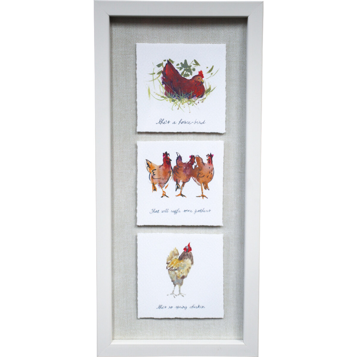 Make way for a whole new rage of farm and country ready d?©cor art that showcases simple silhouettes for your wall. Liven up with a chic feel of modern prints on resin and paper. The white frame lends it a certain brightness contrasting vividly with the roosters and chicks in auburns and different hues. You will love the sense of frolic and fun that this farm creatures bring with them. Un pretentious love for nature-simple sketches and colours that ae bold and yet subtle enough to show the details to much perfection. This is a gorgeous piece of art that holds its own despite its very simple look. Add it to those spaces that you need to liven up with something chirpy and bright-maybe the dining space-the corner in the living room facing the sun window or the children?s room that needs a spot of action. Ready to hand contemporary art from Lavida, help getting a wall make over seem so easy.
