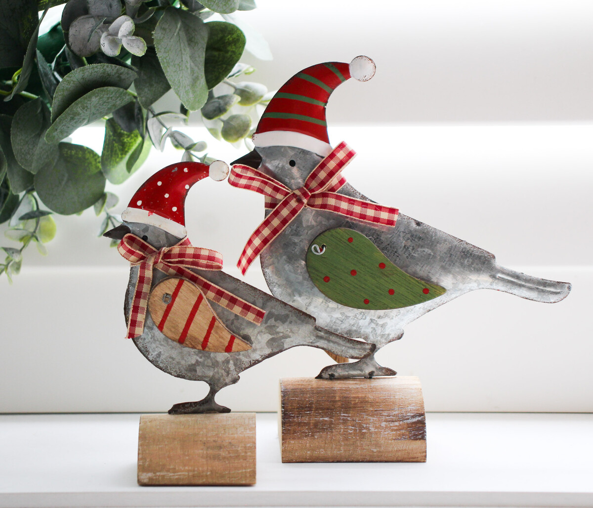 The bird itself is made from sturdy metal and natural MDF timber, so you will see some imperfections and timber splits that only add to its charm! The hand-finished look gives every piece some lovely uniqueness too.