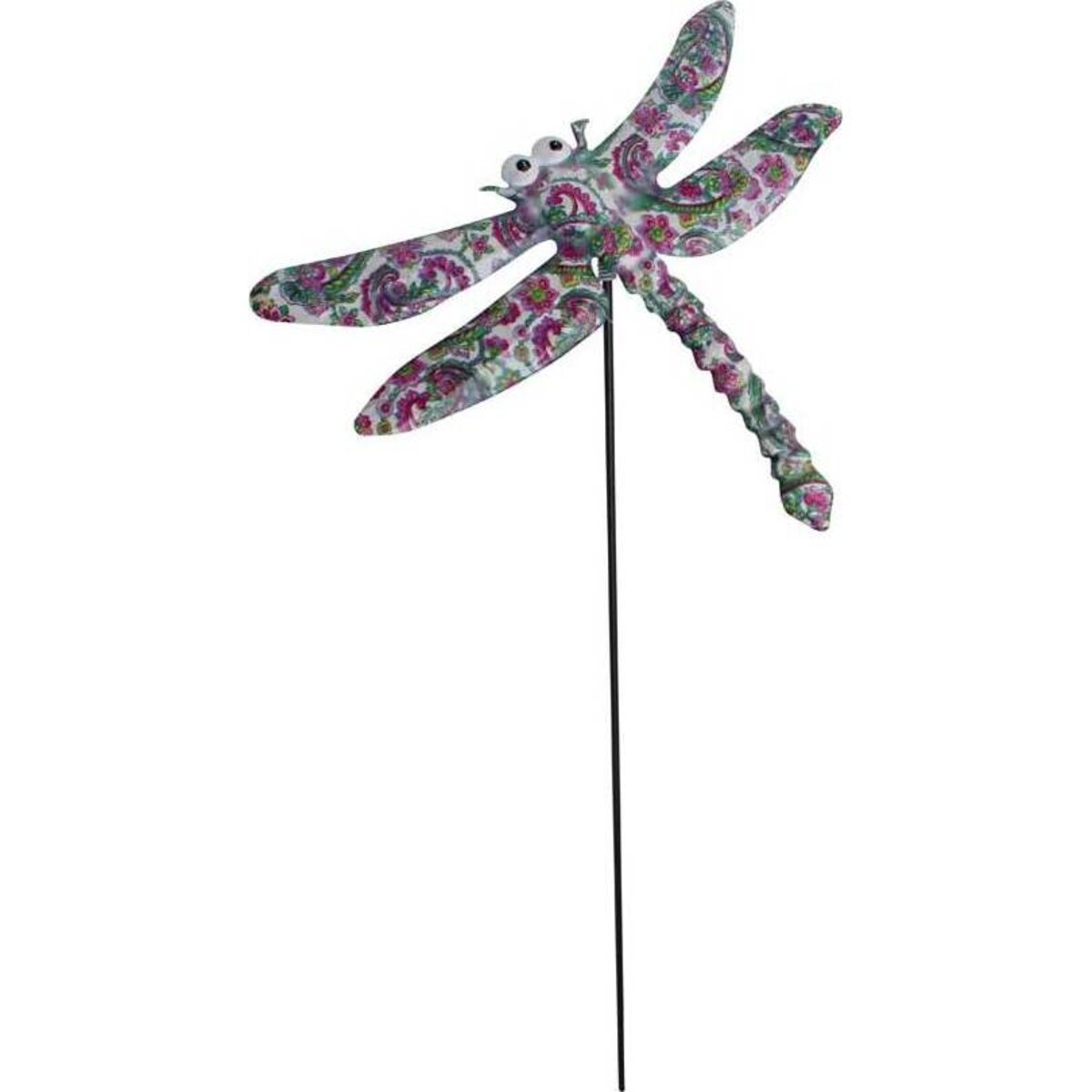 Garden Stake Dragonfly Paisley is a 17x2x23 cm artistic representation of a dragonfly onto which a stick of 40 cm has been attached in centre position. The entire framework is constructed using metal and features prints of paisley pattern which adorn its bodywork in artistic style. Anyone can celebrate the enthusiasm which accompanies great expectations in life by displaying this unique form of art within the home. The stick connected to its bottom section helps pitch it up on a prominent place where an observer gets stunned by its colourful prints.