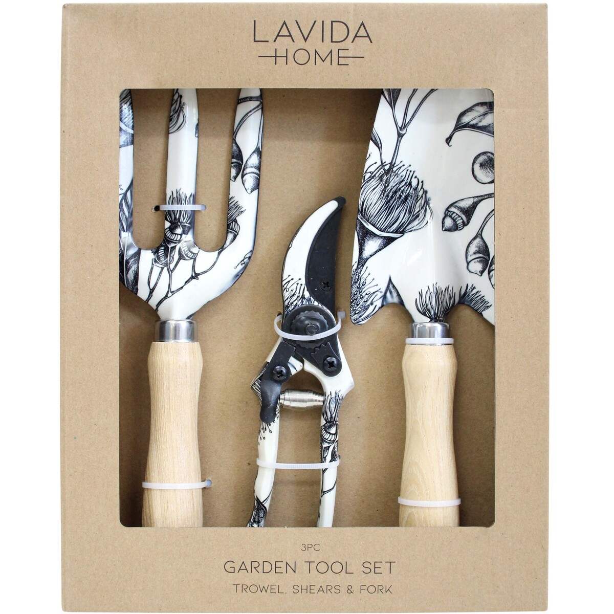Elevate your customers' gardening experience with this exquisite Garden Tool Set/3 Native, a blend of functionality and artistry that's perfect for anyone with a flair for the unique. This set is not just a tool kit but a statement of style, featuring a sophisticated native botanical pattern that adds a touch of elegance to the mundane task of gardening. Crafted from durable iron and finished with sturdy timber handles, this set includes a spade measuring 30cm, a fork at 28cm, and shears at 20cm, offering longevity and comfort for various gardening tasks.