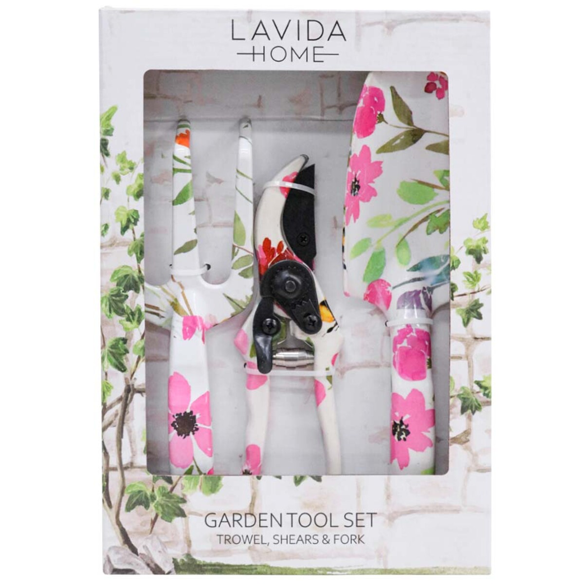 The set includes three solid, giftable pieces - a trowel (27cm), rake (23cm), and secateurs (20.5cm). The handles are painted with watercolour bees and florals and will work with all sorts of home décor styles from farmhouse or country chic through to anything with a hint of vintage. The pop of colour will add life to your customers' gardening collections.