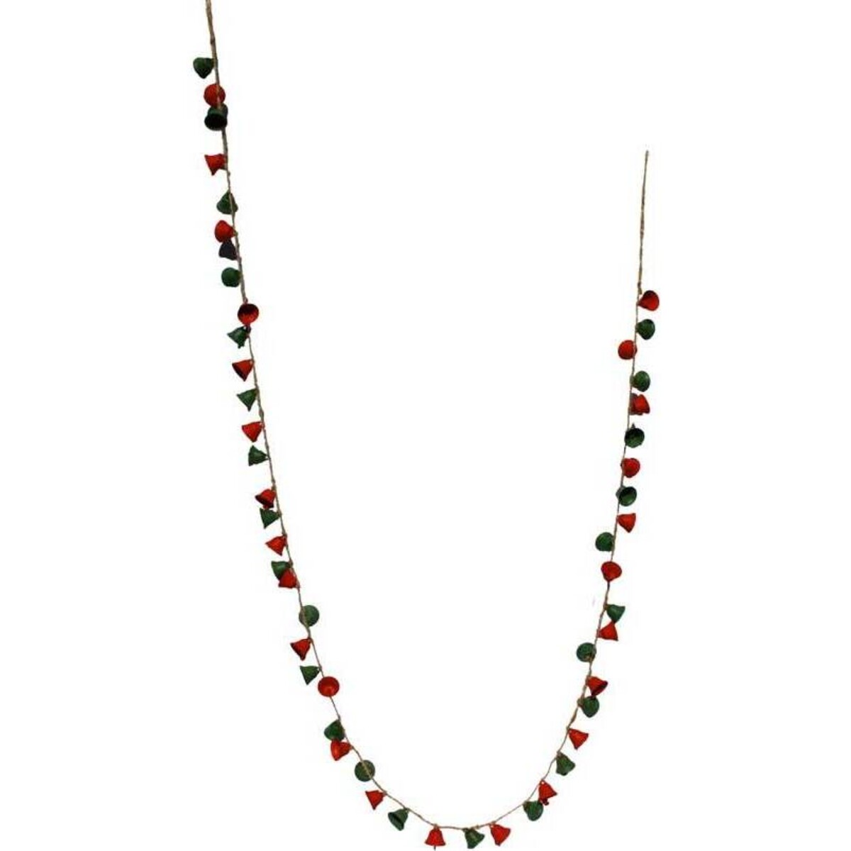 Bringing back memories of Christmases past, these Garland Bells in Multi colours from LaVida are an easy addition to any holiday decor scheme. These rustic-looking metal bells are finished in colours of matte red and green and strung side by side on a simple jute cord. Use in a traditional manner by stringing several garlands around a large Christmas tree. Add vintage charm to a holiday mantle by creating multiple swags with one or two garlands and accenting with fresh pine branches. Hang in a doorway or entryway to warmly welcome guests to the festivities in your home. The jute cord is looped at either end for easy hanging and measures 140 centimetres in length.
