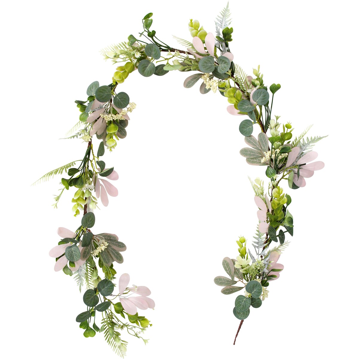There's just something about the way greenery brings a room together. Our Garland Floral Silvergum is no exception, and we reckon your customers will agree. This 150cm garland gives you those soft pink eucalyptus leaves, fresh green sprigs, and elegant little off-white flowers - all twirled together. It’s got a modern simplicity and looks brilliant paired with glass, light woods or even darker timber. We see it in places like nurseries or dining rooms or as a finishing touch to wedding and baby shower centrepieces.