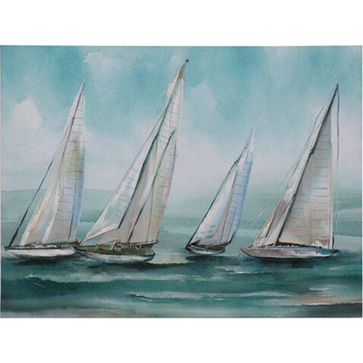 Created to impress not just with its flawless symbolism and subject choice but also the fact that the gel print brings alive the rippling effect of water and the almost like real line - up of boats that seem to have found just the right amounts of wind to send it gliding across the water. The print has rich and varied hues perfectly replicated to a correct shade so as to make the print as great as the actual painting. It is only when you touch the canvas you realize that it's a print, otherwise be it the colour density or the perfect symmetry of the subject, it has no aspect that lacks what a handmade painting would possess. Gel prints will render the print a bright ness that will last through much usage. A perfect pick for your space if you wish to create a marine themed setting wherein this wall canvas could grace one of the larger walls considering its size is most suited for such spaces. A kind of art work that will be easy to add to any kind of spaces - both modern and contemporary or traditional and vintage.