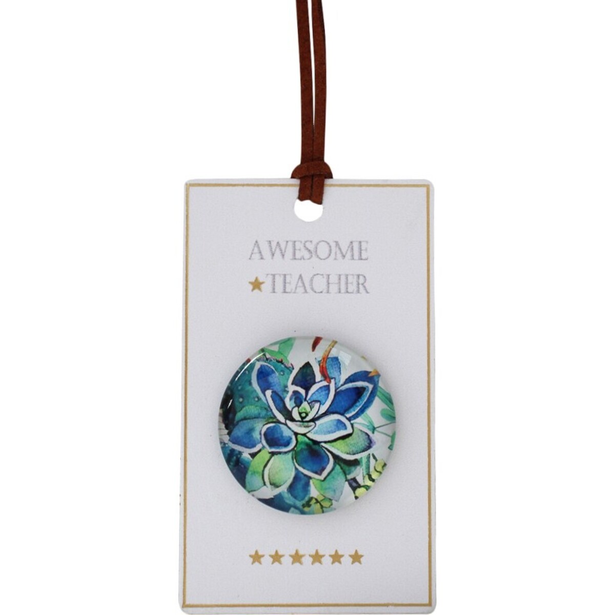 Gift Magnet Awesome Teacher has charming detailed graphics of the Indian lotus. Dive into the depths of the Lotus blossom. This delicate flower exudes beauty and grace. Lotus flower is a beautiful gift to appreciate purity and devotion. This glass magnet is handy to attach notes, artworks, checklists, recipes, photos, cards to magnetic boards, or the refrigerator. It has a strong magnet that will hold firm to metal surfaces. This glass magnet comes with a leather cord that making charming hanging feasible.