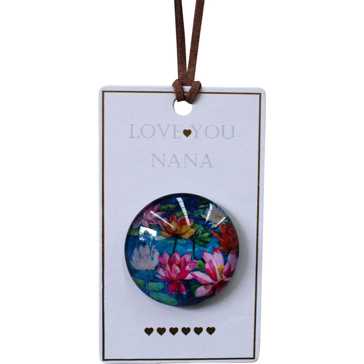 The Gift Magnet Love Nana Lily Pond features a distinctive motif with colourful lilies growing out of a blue pond. Of course, lilies are exceptionally tender flowers with long stalks. Unlike many other flowers, given the right conditions they can survive and thrive for more than two years. The pond from which these lilies grow out from means that the lilies would always have access to nutrients necessary to flourish and stay beautiful. The interpretation of the image presented through this motif is that of wealth, health and flourishing. The lilies will constantly remain healthy and fresh because they are planted right inside and around a poem. It would likewise be symbolic to give aging parents and grandparents (Nana) this colourful decorative magnet as it would be a form of wishing them good health. They can use it to decorate any part of their house by stringing it up or applying the magnet on metallic surfaces.
