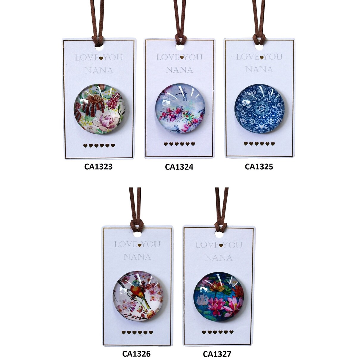 Some renowned artistes, religionists and philosophers have claimed to have derived and/or do derive unfiltered inspiration and meditation when they go to or are surrounded by nature such as in the form of mountains, waterfall, forest, flowers, exotic animals, on the sea, in the snow and several of such natural phenomena. Flowers are among these awe inspiring phenomena. When one comes across flowers that are truly pretty, fragrant, colourful and delicate, one would appreciate the beauty in nature. This is why this flowers/plants themed decorative magnet would make a great home décor item. It features flowers and even plants like corn. It is made of durable metal, powerful magnet, clear shiny glass and original leather rope.