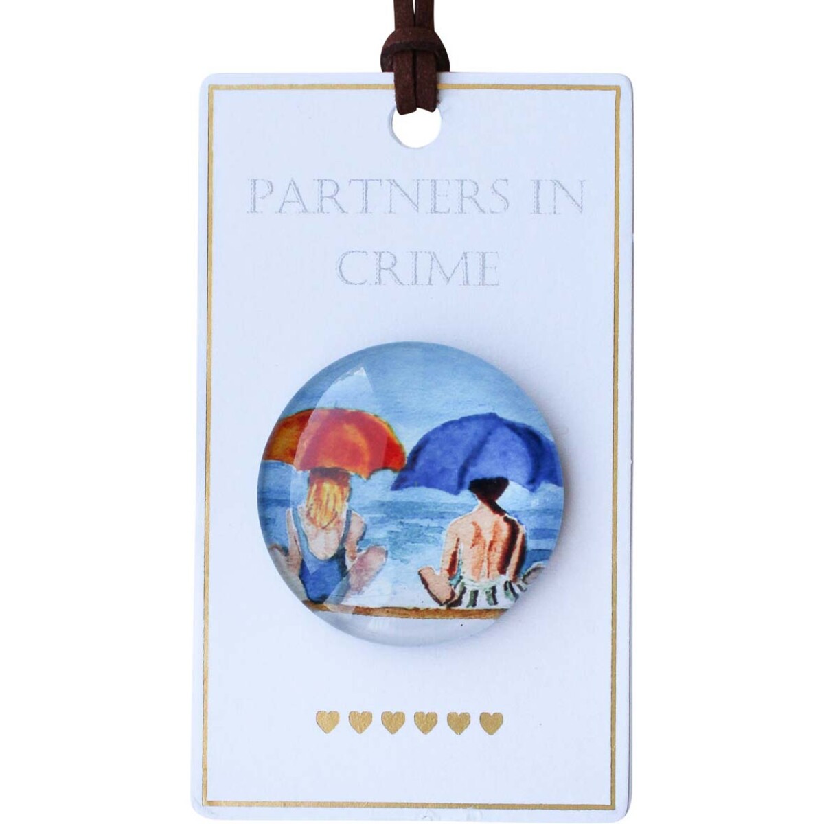This is a top pick for us this season - Gift Magnet Partners in Crime. It’s one of those charming pieces that draws people in every time. The magnet itself is made from sturdy glass and metal, which gives it a little weight and a satisfying smoothness. What really stands out, though, is the artwork. It’s two mates sitting together on the sand, looking out over the ocean under their umbrellas. Could be friends, could be siblings… anything really. There’s something about the relaxed beach scene that makes it feel timeless and comforting.