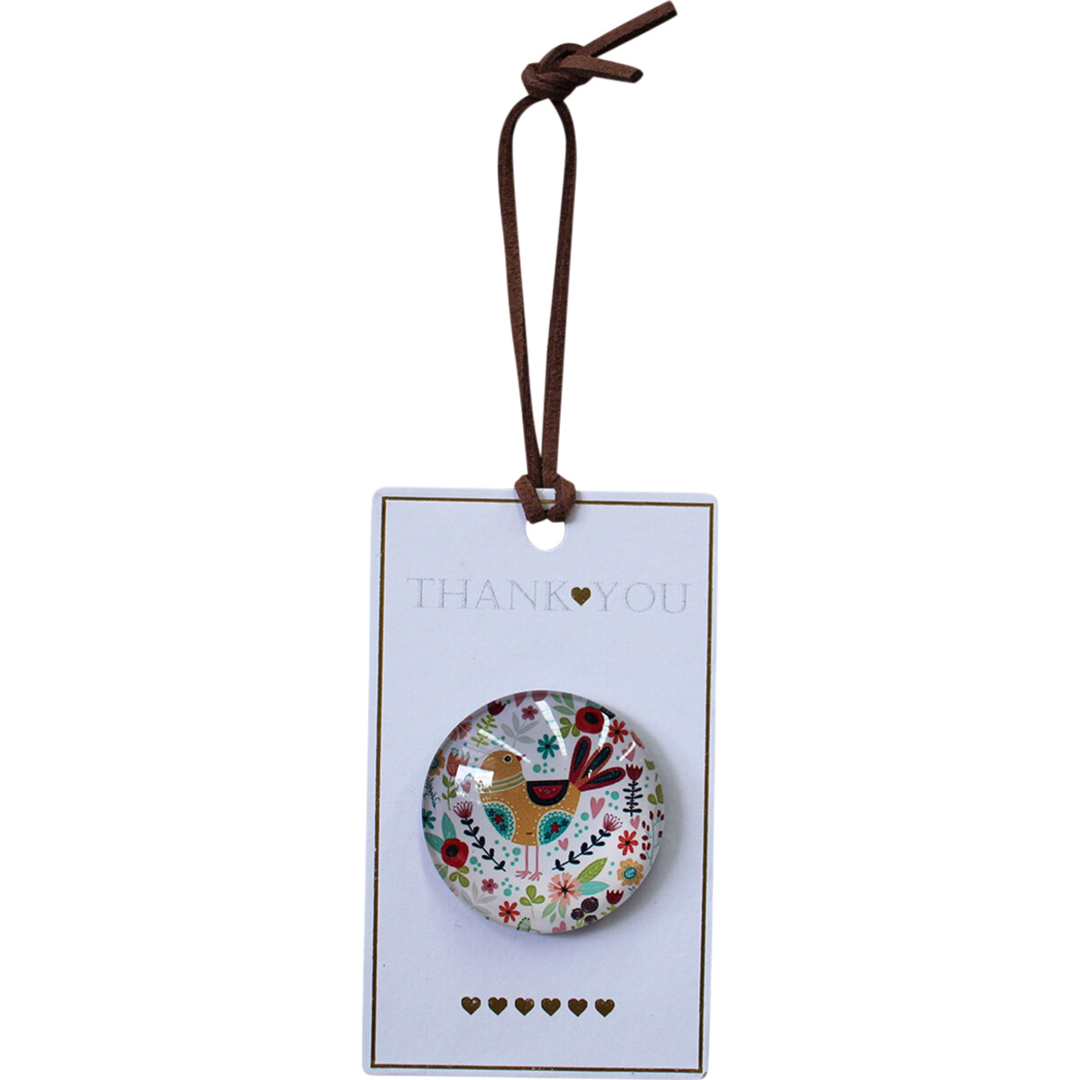 Most birds are known to be beautiful creatures, particularly those with beautiful plumes. One of such is the peacock. It has a wide variety of colourful feathers and being self-aware of this fact, it carries itself in a regal, proud, majestic manner, why shouldn't it? It is among the most beautiful birds in the world. The same is true of the bird portrait that gracefully stands right at the centre of this Gift Magnet Thank You Colourful Folk Bird. It is beautifully covered in colourful plumes of red, black, apricot yellow, jade-green, etc. The beautiful bird is then immersed in a colourful surrounding of flowers, circles and shapes of love which are all painted in a variety of colours such as red, green, grey, pink, maroon, etc. The Gift Magnet Thank You Colourful Folk Bird is simply a festival of colours. As a result, it is bound to blend in with and brighten wherever it is placed.