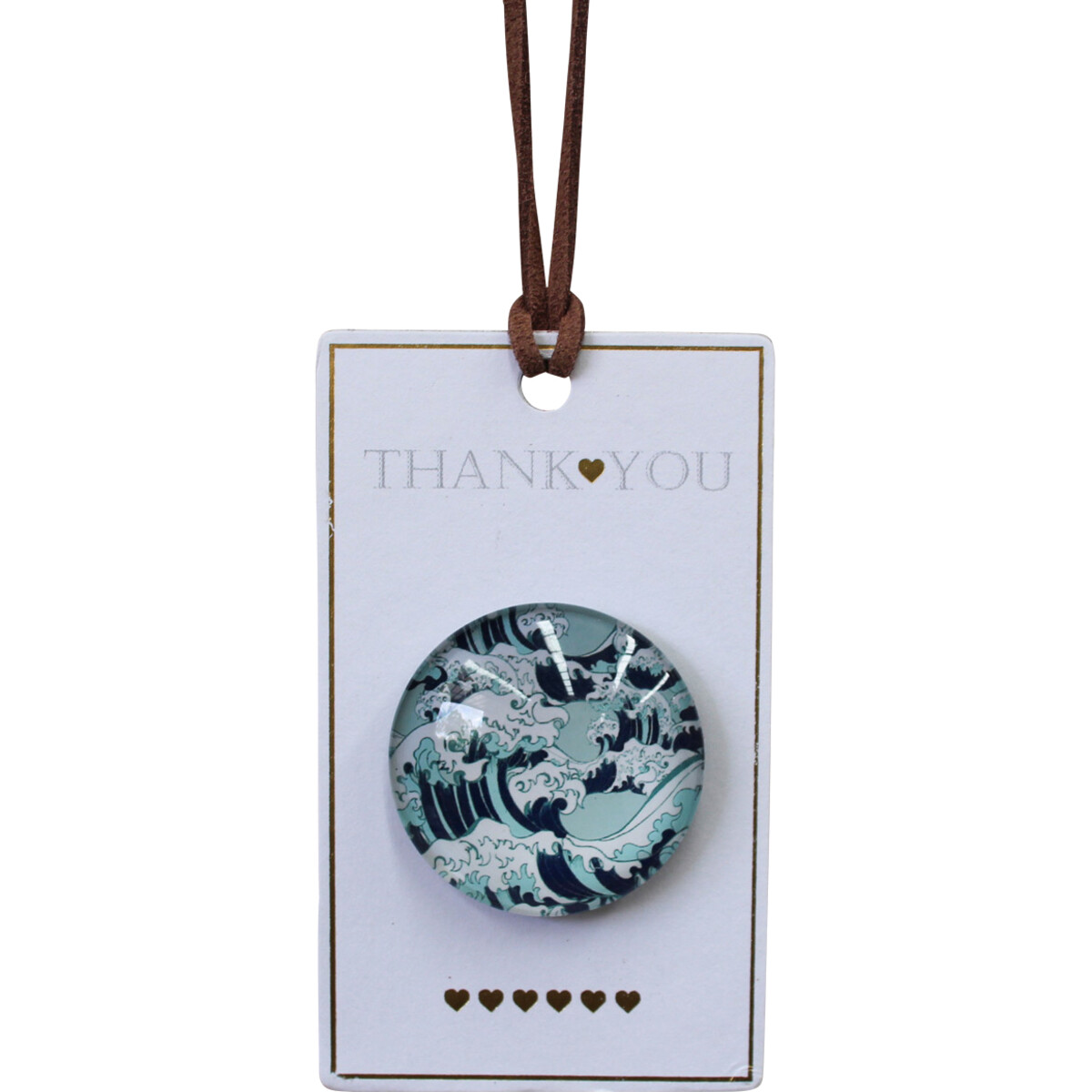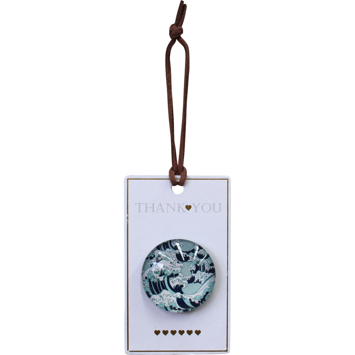 The Gift Magnet Thank You Great Wave goes to great length to give a perfect depiction of the sea. In the image of this beautifully created magnetic décor item, the sea is presented as turbulent and restless. It pictures the waves raging and raving against a stark blue background. It is made from metal, glass, and magnet. It even comes with quality leather rope with which it can be hanged in case the case the client wishes to simply hang it instead of using the magnetic feature. It can be used to decorate any living space or object in as much as it has a metallic part to which the magnet can be put. There are 216 in every carton.