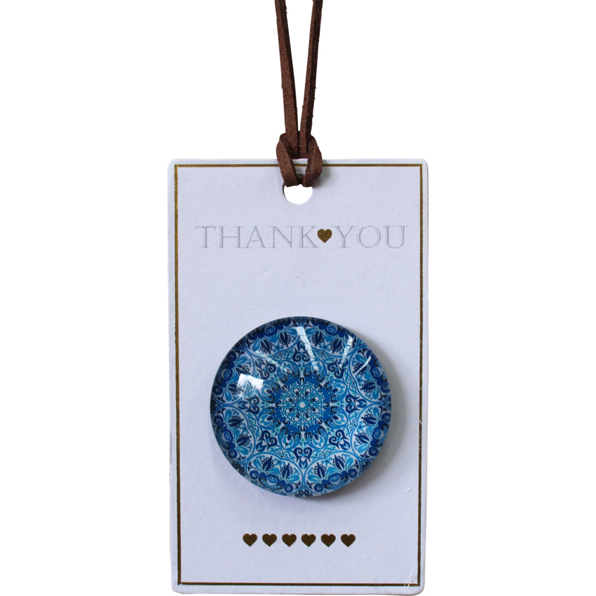 The colour blue often stands for stability, depth, loyalty and wisdom. It is most easily identified as the colour of the sky and the seas. As the most popular colour in the world, it is often not too hard to find traces of the colour blue in apartment designs and decoration. This is why the Gift Magnet Thank You Mandala is richly soaked in a glossy, attractive shade of blue. It has at least two shades of blue including Navy Blue, Blue and Egyptian Blue. You can never go wrong when you order for several cartons of this charming metal-magnet décor. It can be placed on metallic objects within the bedroom, living room, dining room, kitchen, office and even on outdoor items like the front door, gates, vehicles, garden chairs, seats in parks, etc.