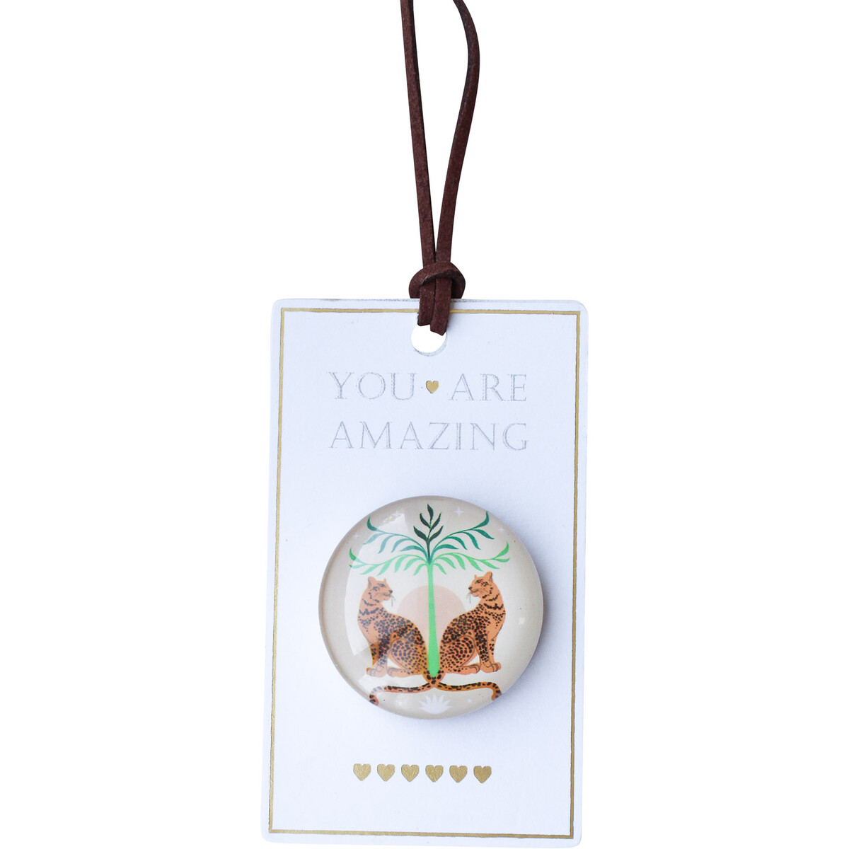 The Gift Magnet You Are Amazing is a lovely gift magnet which expresses the fact that the recipient holds a special place in the giver’s heart. This is why this gift magnet showcases two heartthrob leopards both sitting under a palm tree with the endearing words “YOU ARE AMAZING” written on top of the magnet’s pack and six love symbols drawn below also. Without having to say anything, this gift item will show the appreciative state of the giver.
