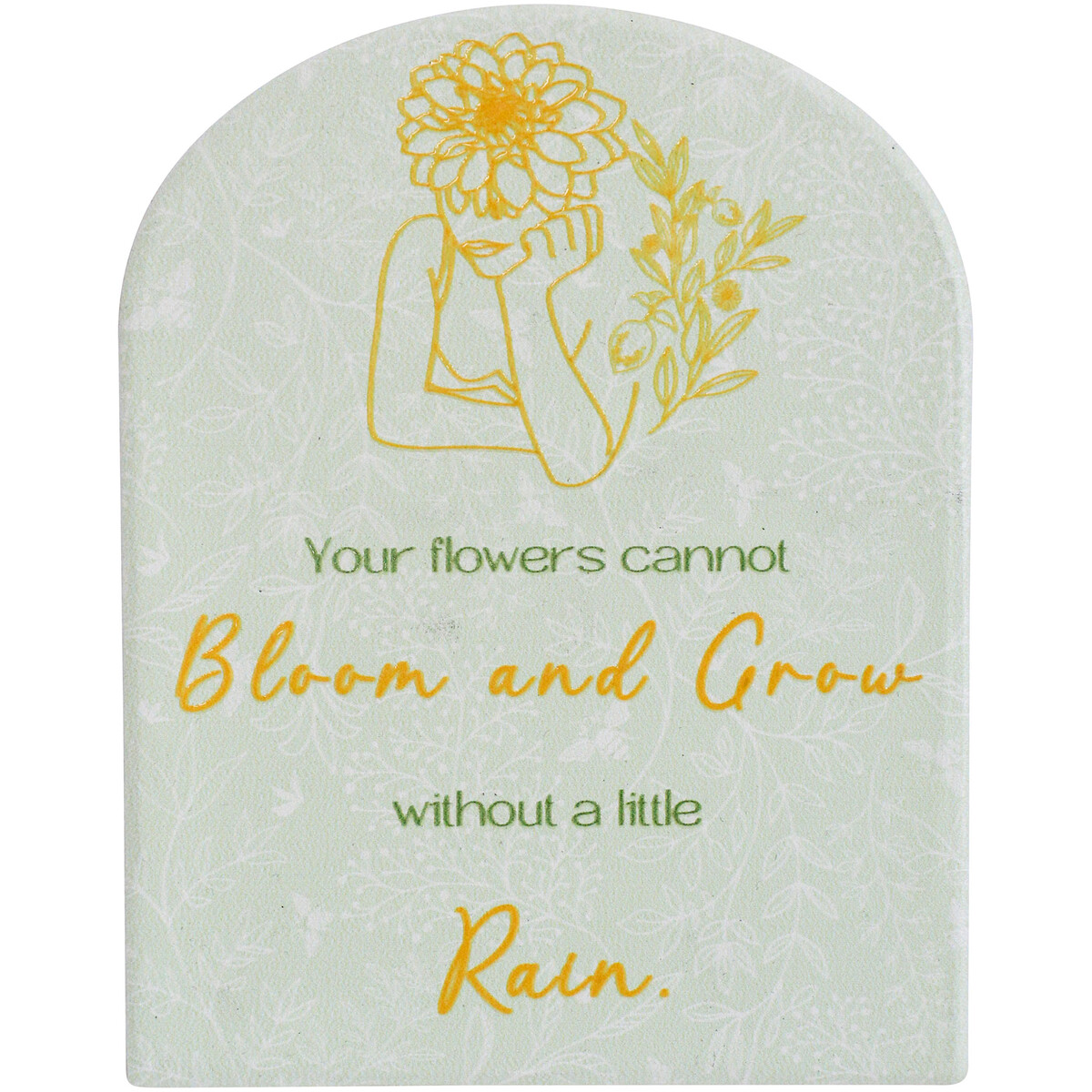 We have a lot of customers who are after pieces with both a meaning and that touch of visual flair, and our “Gift Plaque Bloom and Grow” ticks both boxes in one gorgeous little statement plaque. It’s sentimental, but in a really honest, gentle way that suits a lot of settings. The design is a personal favourite. That soft green pattern behind the pretty gold art - it’s got this lovely line drawing of a thoughtful woman, her head replaced by a blooming flower. It all just fits the words perfectly. Those are: “Your flowers cannot bloom and grow without a little rain”. The mix of typography stands out, but is subtle enough to blend into modern homes and professional spaces. We see these 11x14x1cm ceramic plaques fitting beautifully in hallways, entryways, or work desks for daily motivation or gifting. Do remember that packaging faults aren't credited - packaging is not included as part of the product - but the design and sentiment are absolutely what you see here on this plaque.