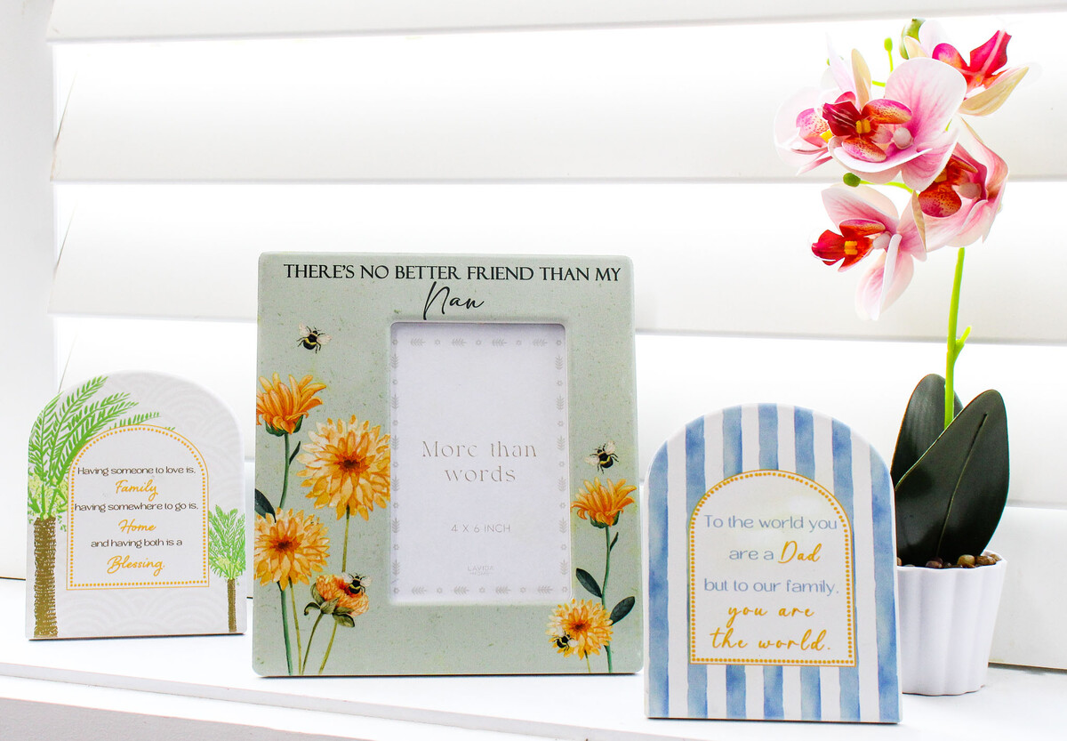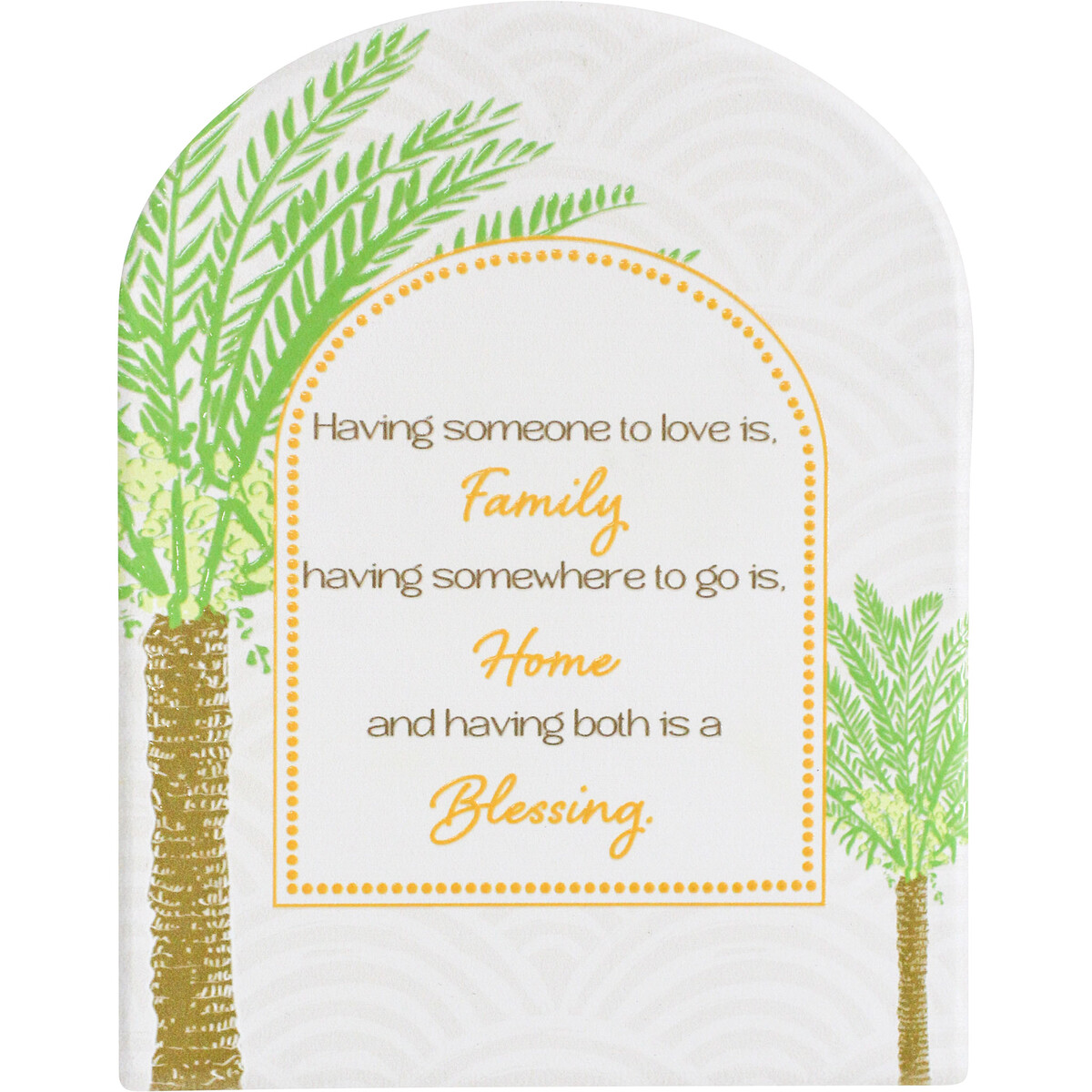 We really love this particular gift plaque. It’s got a sense of charm that’s pretty hard to come by, and we think customers will gravitate toward that. Our Gift Plaque Family, made from ceramic with a striking palm tree design, is gentle enough for any room but still makes a solid statement at just 11 x 14 x 1 cm. We feel its unique arch shape and calming colour palette helps it work with a variety of home aesthetics - beachy or boho, modern coastal, even those who just want something heartwarming. The text is clear, uplifting, and not too over-the-top - perfect for gift-givers who want to avoid anything cheesy but still get the right sentiment across. With its sturdy build, there’s a touch of quality to it that people can actually feel. And because the message is sweet but subtle, it makes a genuinely versatile pick for all ages and all sorts of occasions - birthdays, Christmases, housewarmings... even those ‘just because’ gifts. We like it as an easy point-of-sale option for checkout displays but honestly can see it going anywhere in-store thanks to how little space it takes up. Retailers should note though that credits aren't given for packaging faults or damage as the packaging isn't considered part of the product itself. It’d be the perfect addition to any shop that wants affordable and timeless sentiments included in their range.
