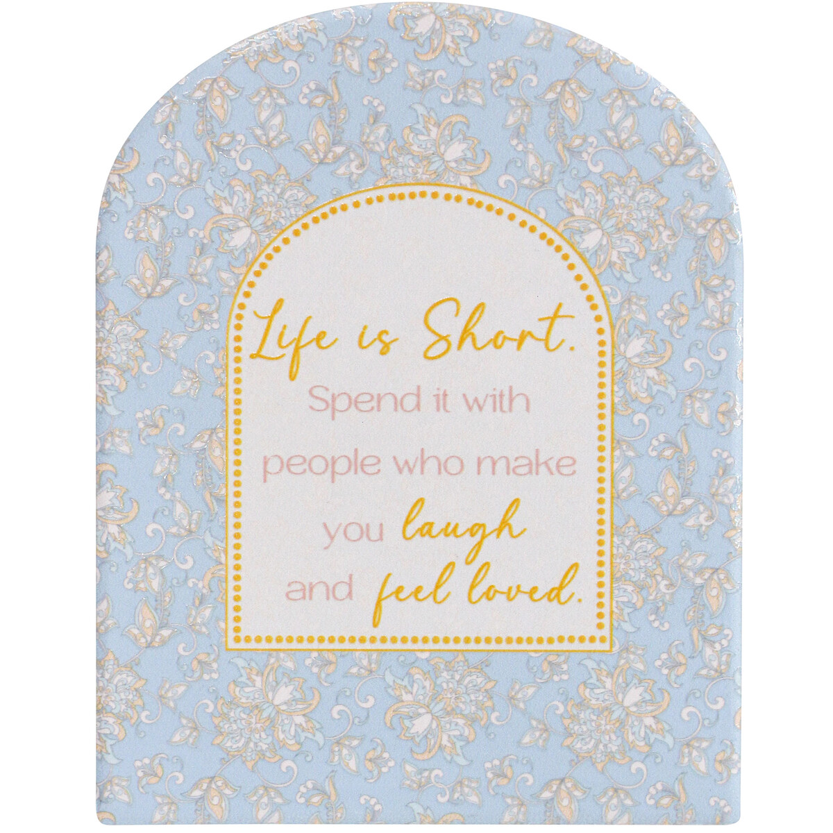It's hard to beat a sweet reminder about how important it is to surround ourselves with the right people. Our 11x14x1cm Gift Plaque Laugh Loved is made from durable ceramic and comes in a beautiful soft blue shade that works just about anywhere - from bedroom shelves to lounge room side tables. The whimsical font, floral background, and gold accents give it a heartwarming touch that’ll catch the eye of anyone walking by - perfect for gift shops and homeware retailers looking to bring more feel-good moments to their customers.