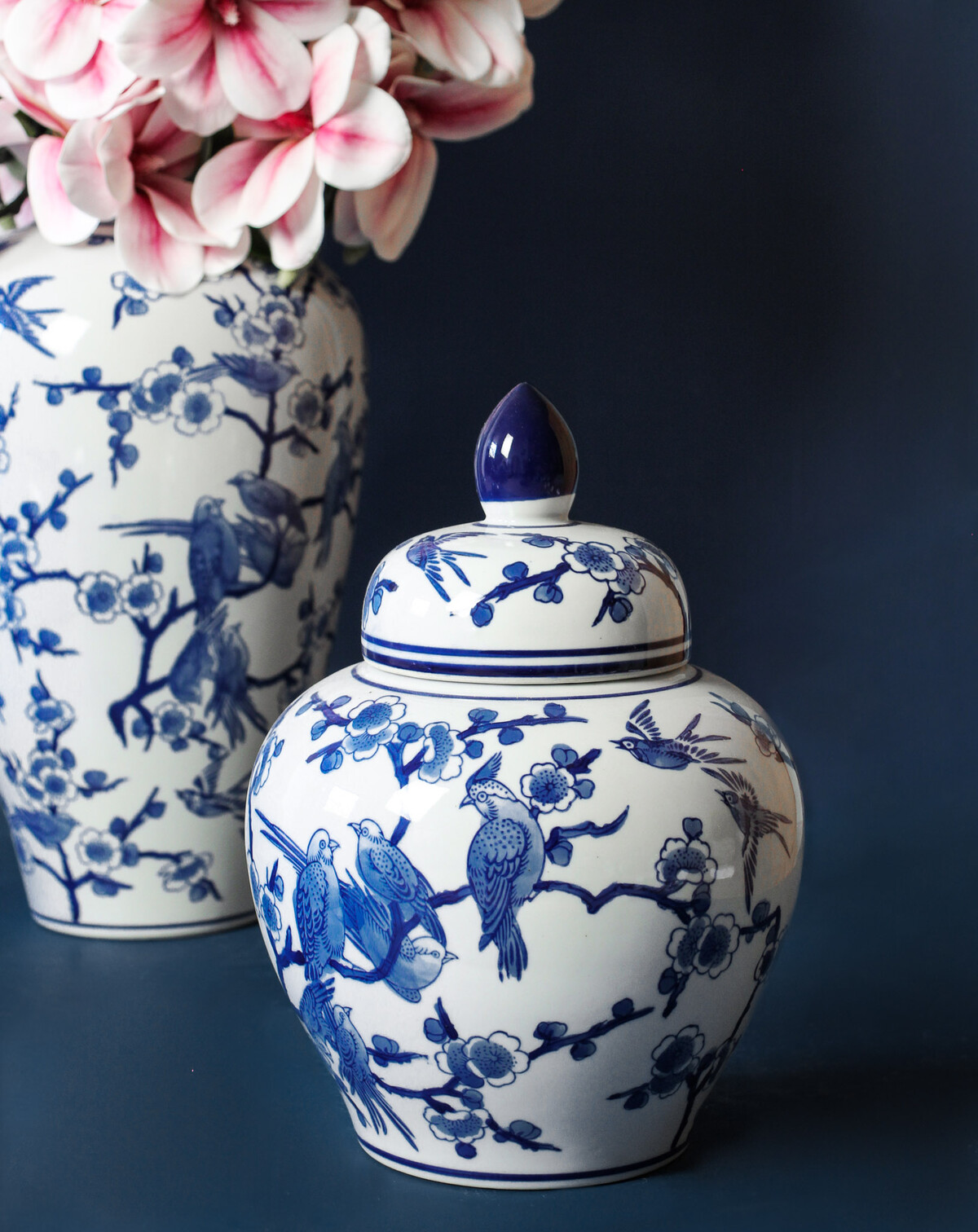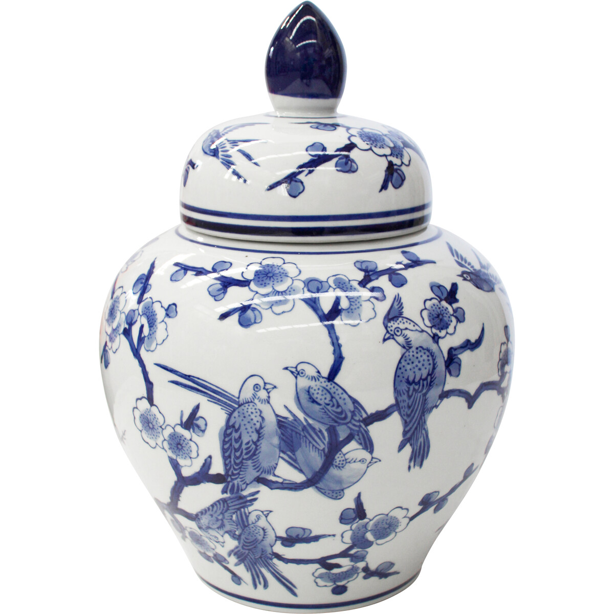 The top of your console, the kitchen counter, the sideboard are spaces that require little touches of colour and form that can be combined well with the rest of the decor and help bring in in a certain element of design as well as an artisanal kind of beauty- and porcelain especially in its traditional form can help provide you just that decor stimulus. Crafted expertly by hand, this ginger jar is charmingly rounded and well-balanced in its shape. The traditional white and blue colours bring out its old-world charm to the fore and the little lidded top that ends in a blue peak on top, adds to its functional feature. It could be used simply as an accent or in combination with other porcelain articles to make a more profound kind of style statement. Use it also for storing spices are some special kind of tea and when you feel like it, remove the lead and stick in a few fresh blooms from the garden, to give with a whole new look.