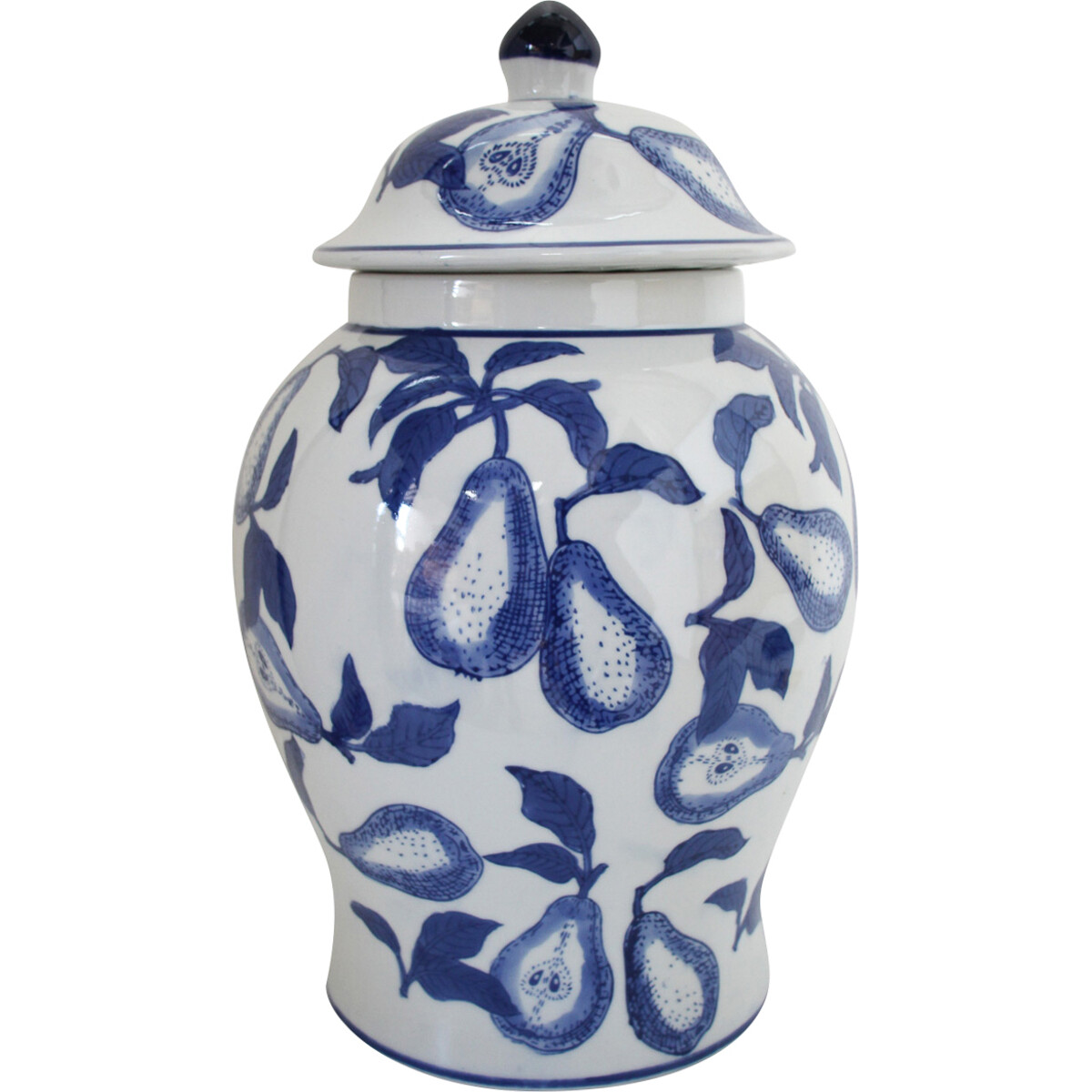 Beauty is in the eye of the beholder? Not with this ginger jar French pear! You will hardly see a customer that would belittle the aesthetics that this product oozes. Do you care to know why it is irresistible? Because every material etched together in producing this jar are a perfect fit starting from the porcelain materials to the white coating and matching blue French pear painting. This product adores every surface it is placed on. It has a sturdy build which measures 18.5 centimetres in length and width.