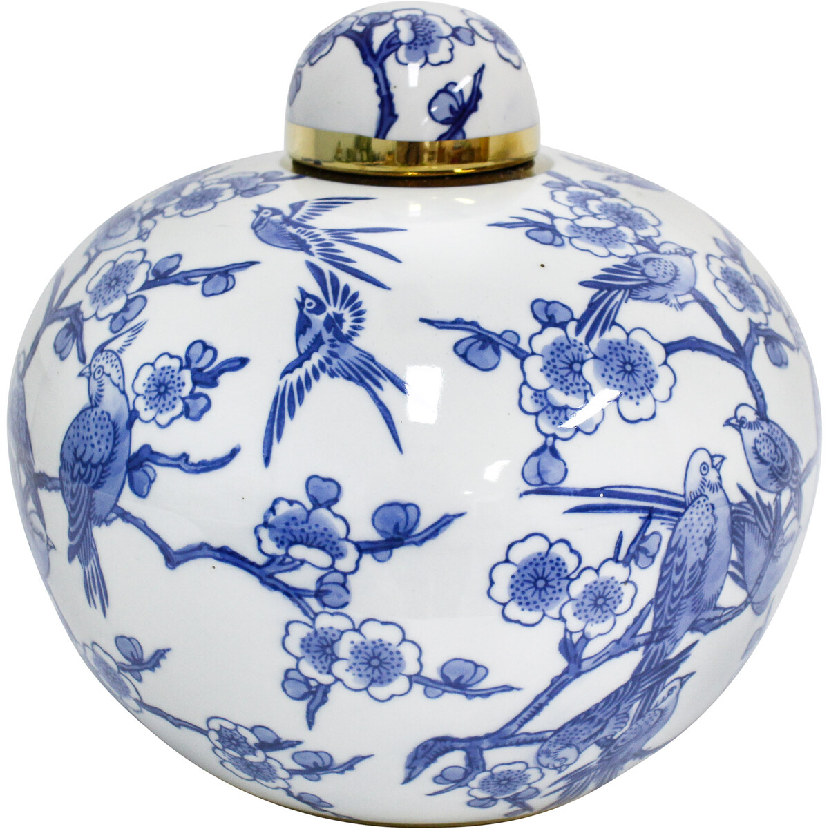 In many of our decorative activities, we often strive to bring in the beauty and freshness of gardens into our interior décor. In order to satisfy this much desired decorative need, we have gone the extra mile in order to source for you a classic ginger jar that perfectly meets this much sought after criterion. Meet the #Ginger Jar Rd Bird/Blossom! It is made in a spherical shaped form with its exterior showing uniquely hand painted motif of cute birds perched and flying happily in a garden.