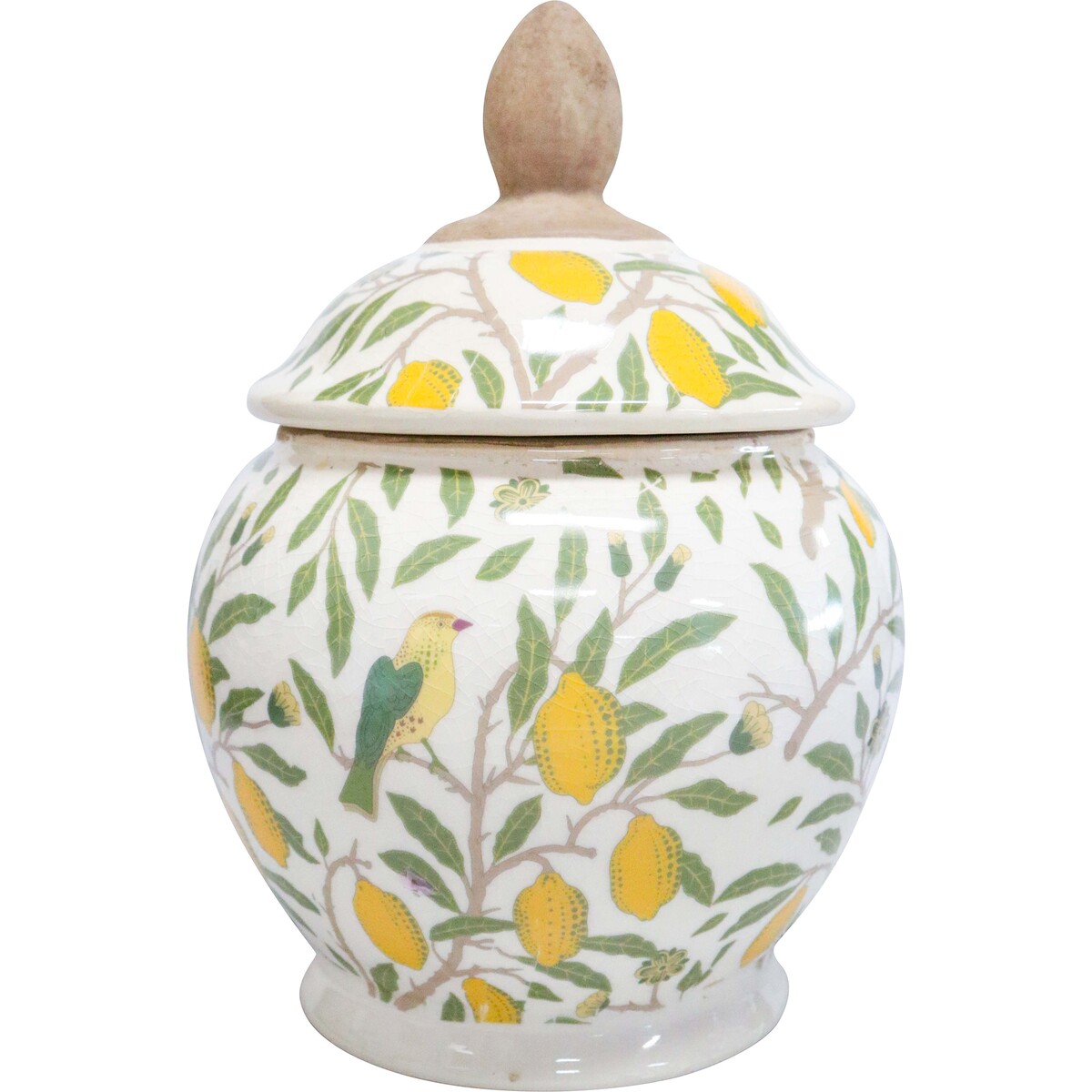 We’re pretty chuffed about the Ginger Jar Vintage Lemon. For shops that like to keep things feeling fresh, this is an easy win for home and kitchen styling. It’s a 19x19x26cm decorative classic, with a real feel-good factor thanks to those bright and cheerful lemons, little birds, and leafy pops of green. We love how it pairs with woodgrain benchtops and big clear jars for a farmhouse or cottage vibe - but it also really pops on a modern shelf as a centrepiece.