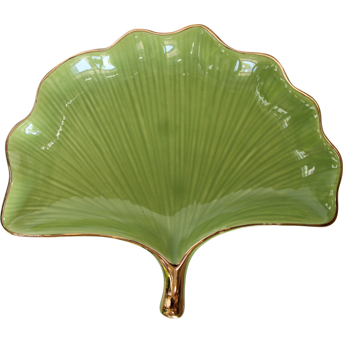 Get an accessory to keep your accessories well. This gingko trinket tray in a vibrant green colour looks gorgeous setting out of your dresser and we'll make life easier by helping you reach for your little Treasures ever so easily. Made from ceramic, edged in gold, the leaf has a beautiful wavy pattern, the little repose of colour adding to its beauty. Apart from the shape and the colour, the size fits perfectly on two table top and is large enough to hold several of your trinkets. You could keep the next set of trinkets you wish to wear ready to for the next outing. Or simply place the tray on your bedside, because that is the moment when you like to take off your rings and earrings, and any such ornament.