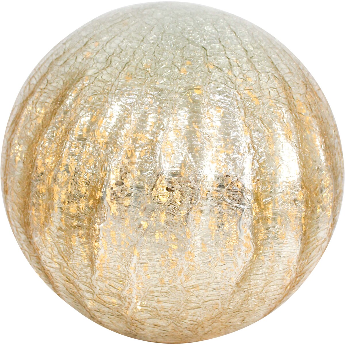 The light dances through the crackled texture, casting an array of reflections that add an air of sophistication to any room. Its neutral hue makes it a versatile accessory, capable of complementing a variety of home or office decor styles, from the modern minimalist to the classic traditional. Whether adorning a cozy corner, serving as a centerpiece, or enlivening a bookshelf, this glass ball infuses spaces with an inviting ambiance.