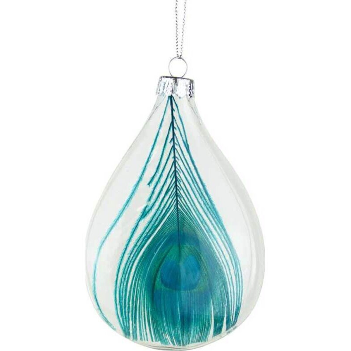 Glass Bauble Plume Short has dimensions of 8x8x12 cm. It features a short, bulb - shaped glass that is decorated with Feather - like patterns. The entire structure is suspended at the top using a chain connected to a ring. This decorative piece of artwork can be utilized in many creative ways adorn an environment where celebration is expected. One should however handle this device with care, owing to its brittle glass construction. Acquiring a couple of these items would be sufficient to spruce up a Christmas tree or other large objects related to joyous festivities.