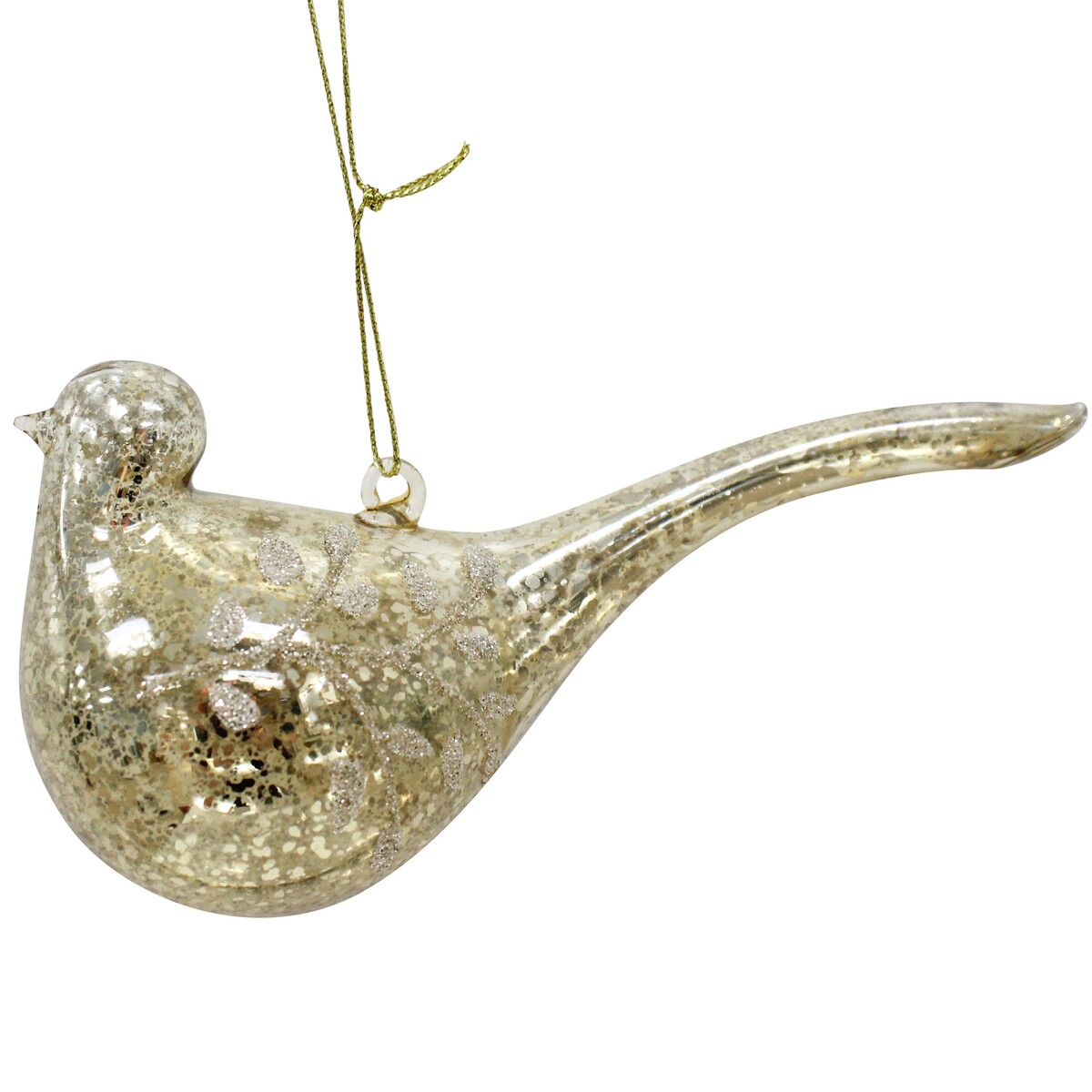 Speckled in silver and a delicate shade of champagne colour0this delightful hanging bird comes with the promise of infusing the space with a gorgeous festive flavor. Crafted by experts who has endowed it with not just a proportionate shape and a unique colour-but its glaze and fine smooth finish speaks of the crafting technique used. Will be cherished for its ornamental value, can be made part of larger arrangements like wreaths and floral displays as well as well as for adding a light and airy feel to the space , which is always a welcome means to give your festive decorations a fresh update. The loop comes with the hanging slot that makes its usage easy.