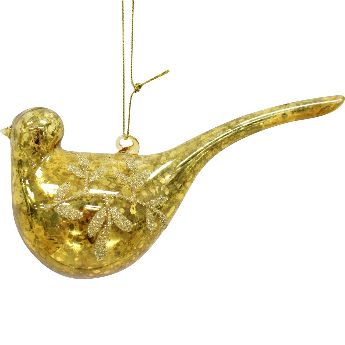 The 15x4x8cm glass bird comes in a beautifully textured gold finish and features hand-painted detailing on its body. It’s actually all hand finished, so every single piece is totally unique. Some will have small imperfections too - but we prefer to call that character! To hang it up, it has a discreet matching gold cord.