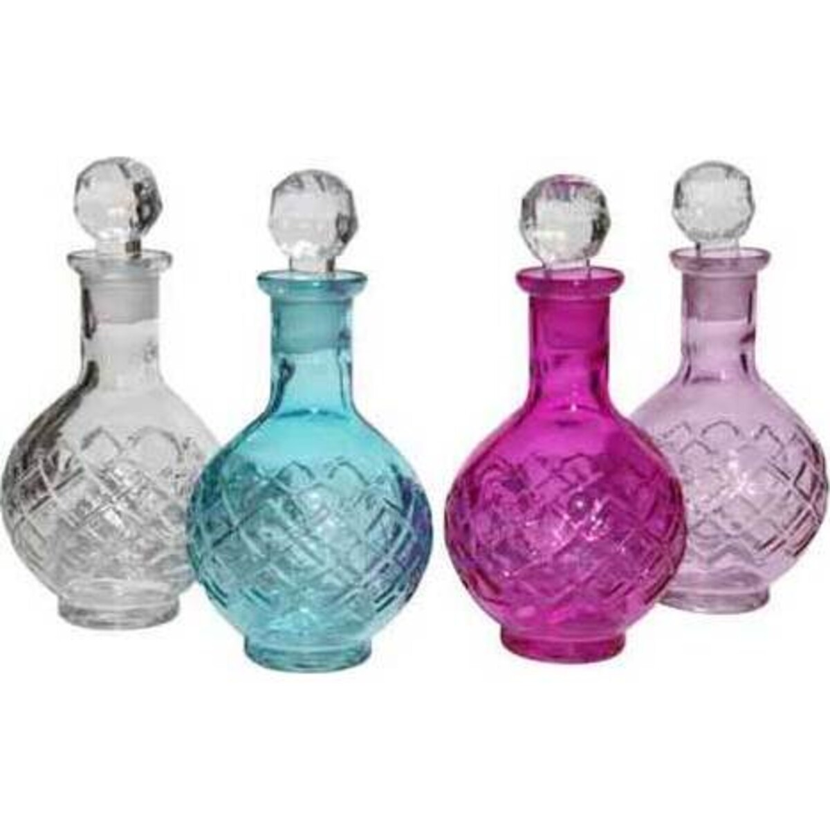 Glass Stopper with Stopper Multi - Set 4 is a beautiful, elegant and fun set of four glass flasks or bottles. Each comes with a circular, crystal-like stopper.