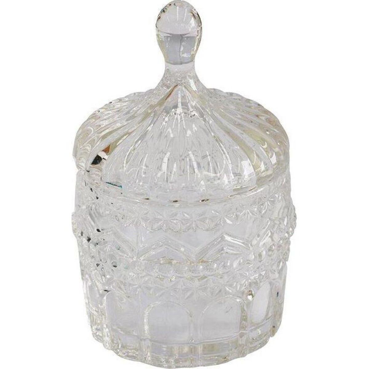 A wonderful example of how great design can marry great utility as well and create something so aesthetically pleasing! Having adequate strength in its 14 cm high structure and with a gorgeous design detail that will be missed by none, it will act like décor filler while also keeping your tiny possessions much safer. The lid has a tiny knob that is easy to grip and will not slip off the fingers. It has a round body that is all of 8 cm in diameter making it significantly large enough o store even slightly larger articles like hair pins and clips. The ornate design gets its beauty also from the quality of glass that has gone into designing this piece. Such organizers are always flying off the shelf as they are not juts merely meant to be helping you keep your keepsakes and trinket safe but work wonderfully as space fillers, chocolate serving dishes or for keeping fragrant dry flowers.