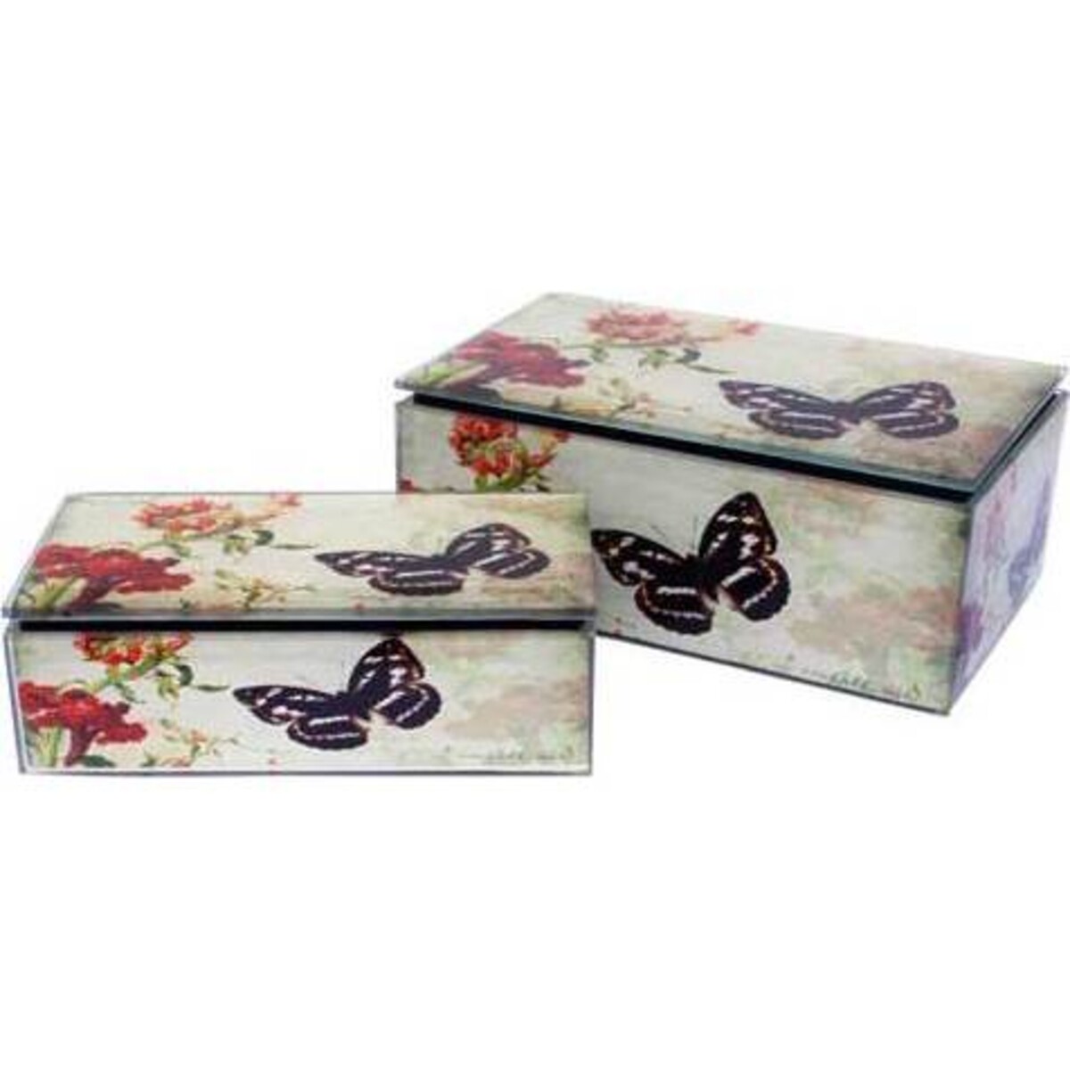 They're going to be your newest favourite decorative accents in your home. The boxes come in two different sizes and shapes and each feature the same beautiful design that consists of black butterflies hovering over blooming red flowers. You'll find every excuse possible to display them around your home where you can see them on a daily basis. They're so lovely, don't be surprised if guests beg you to tell them where to get their own.
