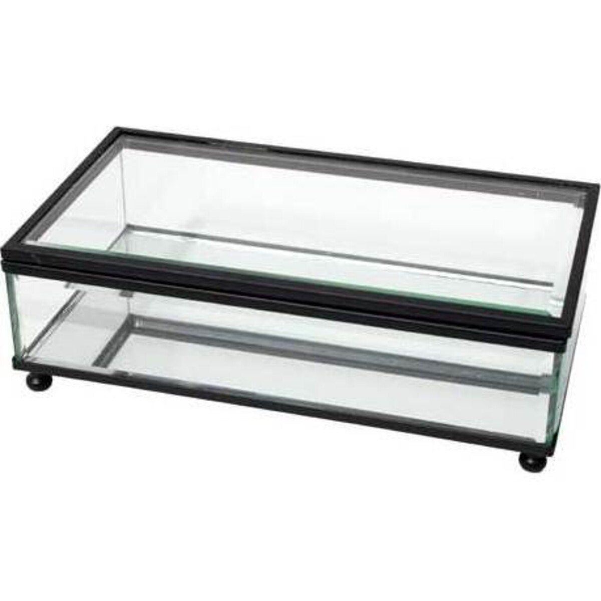 Add a vintage feel to any room with a simple glass box that almost presents a fairy - tale like vibe. Only this time, instead of Cinderella's glass slipper, it's her glass box that holds all of her jewellery! The thick black border looks elegant resting against the transparent top and sides of the box. Probably the best part about his stunning piece is the four small bumpers that the box sits on. The bumpers keep the glass bottom of the box from getting cracked or smudged and also make it easy to clean. Placed on a nearly any coloured surface, this piece will add a chic and polished feel to any room in the house!