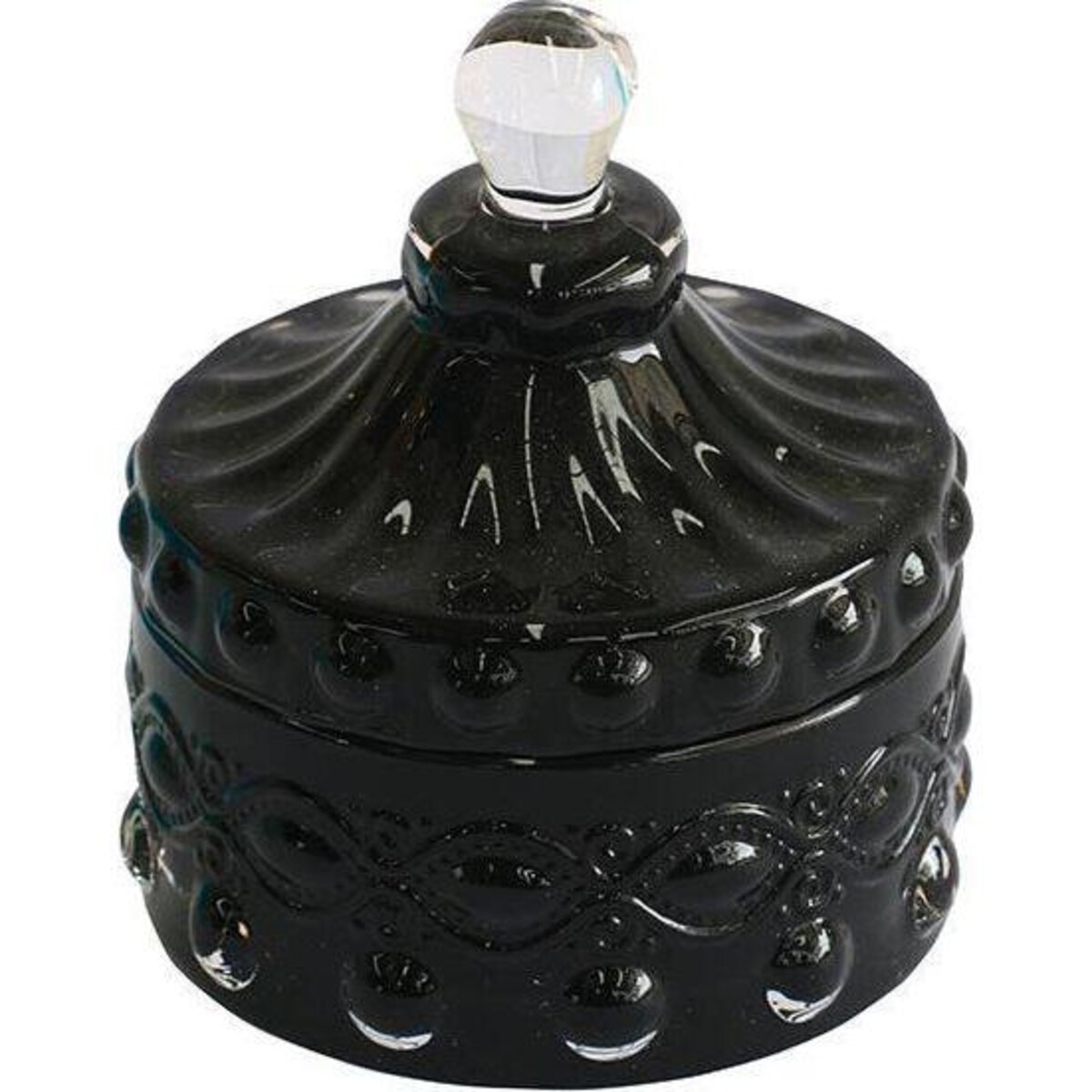 Hang in there if you have been having some serious trouble locating your trinkets when you need them most - here is that quintessential, glass case that makes available a safe haven for all those small little precious things from earrings, rings, cuff links to hair clips, that seem to do the vanishing act each time you desire to wear them Keep them in the most accessible space for them - this little case with adequately large storage inside it. Made from glass that has been given an opaque finish, a black colour and a design that stand out on the dark coloured glass, it sure is a superb combination of looks and usability. The arched lid rises to a lovely clear glass knob that makes opening and closing of the case rather easy. The upper portion sits tidily on the lower ones edge and makes the glass case function superbly. Add it to any space which is your favourite for keeping trinkets and help increase its style statement too.