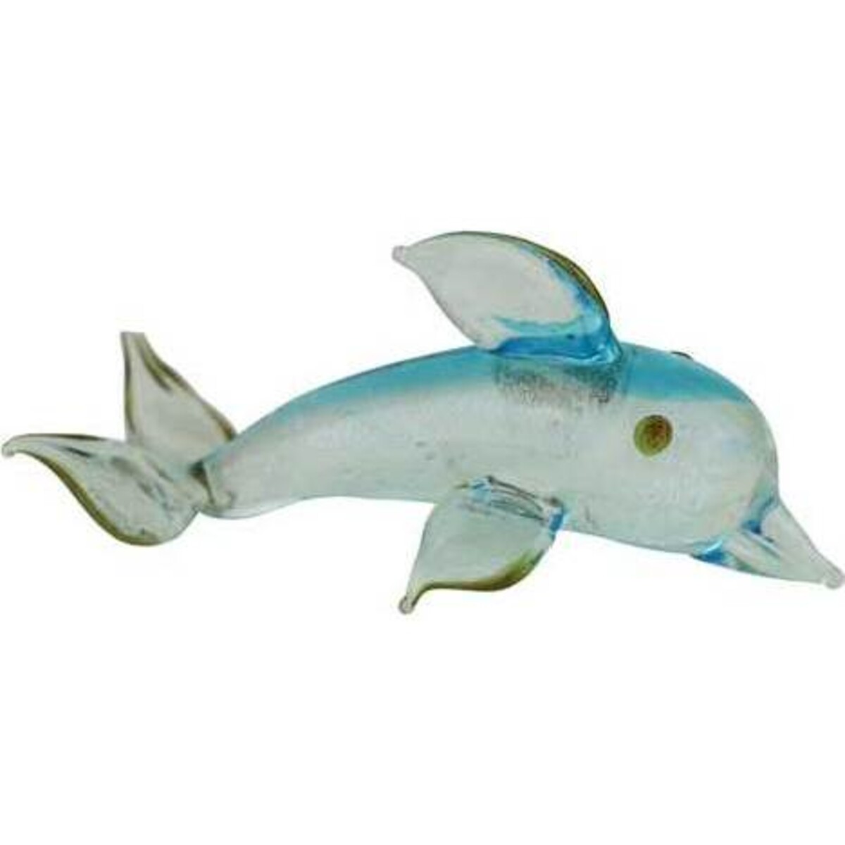 Glass Dolphin Foil measures 9x4x4 cm and captures the streamlined characteristics of a dolphin in spectacular form. This item can sit on a dining table of average size where it would create remarkable contrast with any kind of furnishing around it. The eyes, fins and mouth express its uniqueness in style, making it suitable as a teaching aid within classroom setting. Glass Dolphin Foil has a bluish appearance and can complement diverse types of settings among them aquatic surroundings such as pools and bathrooms. As well, this device can be a great gift to hand in during an annual ball or other corporate function.