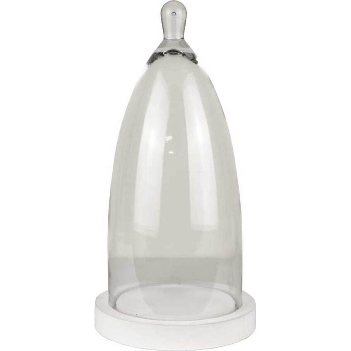 Home decors have always been a space where personality and ideas in changing time have always infused interiors with a new energy and style. With additions such as this Glass Dome Ampoule, the decor gets its fascinating definition from the wooden base on which rest its embedded rim. The top has an oblong shape and allows easy lifting. Anything kept within will attract attention because of the manner in which it has been designed. Be it shells, tiny little coloured stones, some figurine or even tender plants that could need the glass house effect to survive - it will be a display that you would likely be very proud of. The smoothness of the clear glass that has been given such an incredible finish and the rustic wooden base makes its look all the more fascinatingly different. Add it to the coffee table and see the conversation round not juts w3at it holds but also its very own design. The glass dome rises 41 cm in height and has a maximum diameter of 21 cm at its widest. The wooden base is painted white giving it a fresh look of spring time.