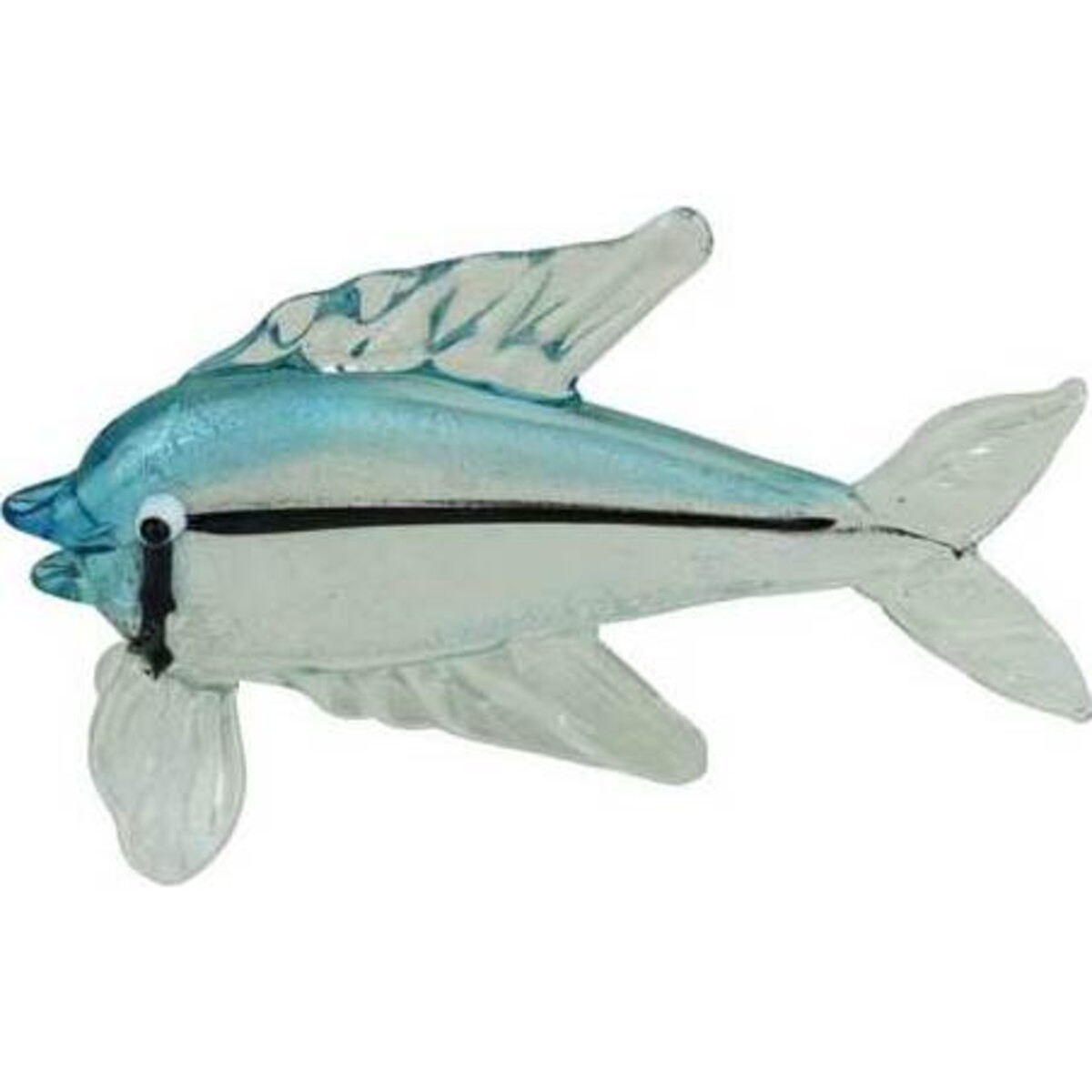 Glass Fish Black Stripe measures 7x5x2 cm and is created entirely of glass. It features a black stripe in longitudinal form on a unique design of fish. The fins emerge outwards in streamlined manner, exhibiting dynamic characteristics which facilitate its motion in a clear perspective. One can suspend this item somewhere prominent within the living room or place it atop the bedroom drawer to enhance interior decor. Kindergarten instructors will find this artefact good for illustrating the marvels of nature to children during practical sessions in class. Glass used for its construction imparts a smooth texture which is gentle to feel using the hands.