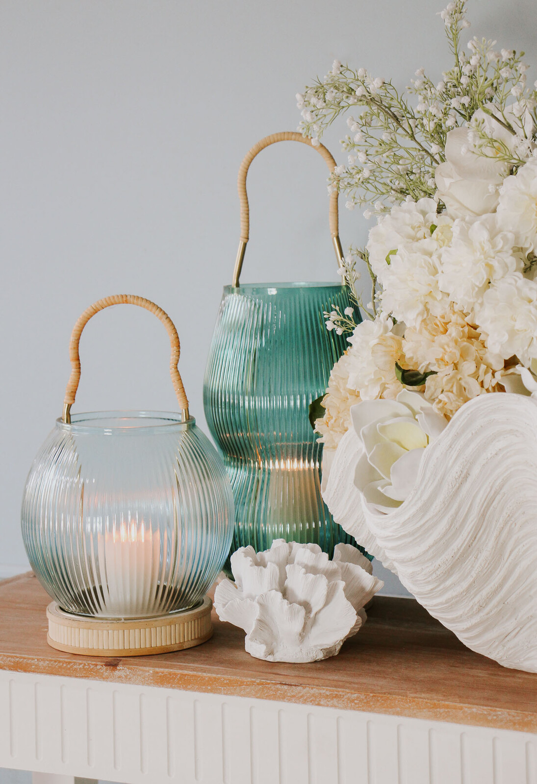 We love bringing in fresh, unique pieces that act as a real centrepiece for a home - and our Glass Hurricane Cyra Mist does just that. This decorative hurricane lantern is a real showstopper, instantly creating a striking focal point whether it’s popped on a coffee table or used in an outdoor living space for gentle, ambient lighting. At 20x20x52cm, it’s substantial enough to stand alone but also has this lovely versatility to blend into vignettes alongside potted plants, ceramics, or whatever your customers are trying to show off.