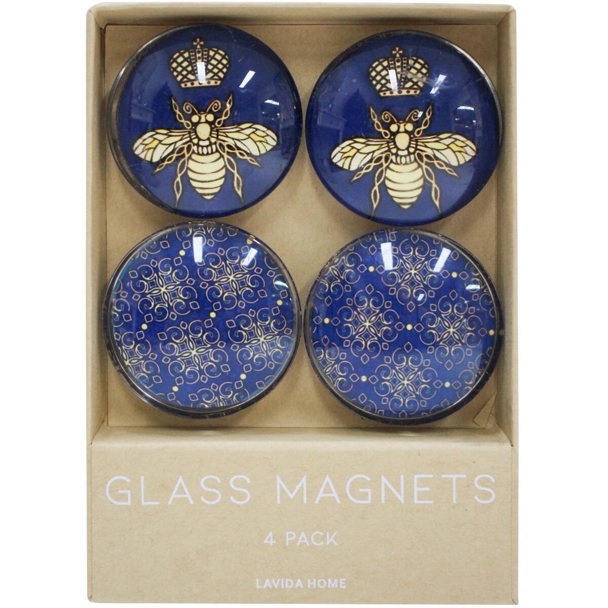 Glass Lrg Magnets S/4 Queen Bee