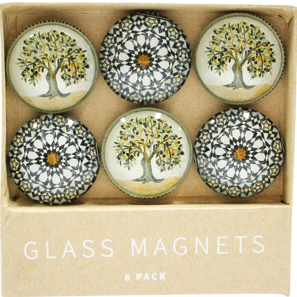 Three out of the six glass magnets which make up this Glass Magnet Mediterranean S/6 have their smooth textured surfaces glazed with the motif and image of a large tree with so many leaves and pods or fruits while standing in the mist of yellowish dried grasses. This choice of a tree as its motif is sure to attract and capture the fancy of your customers. The other three magnets are ornamented with circular forming patterns the centre of which is gold while the remainder is black. There are as many as 48 packs in every carton which you order today.
