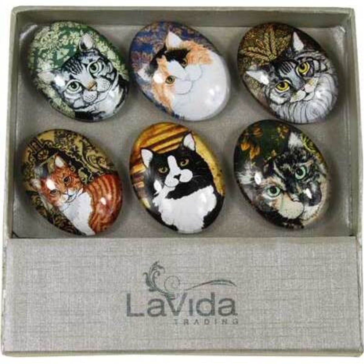 Oval transparent glass orbs with the most enigmatic of cat faces peering out from them can be the most delightful of things for any cat lover to own - this set of glass magnets make a great gift not to just cat lovers but also to those who like to personalize their space with little knick knacks that reflect their likes and their personalities.
