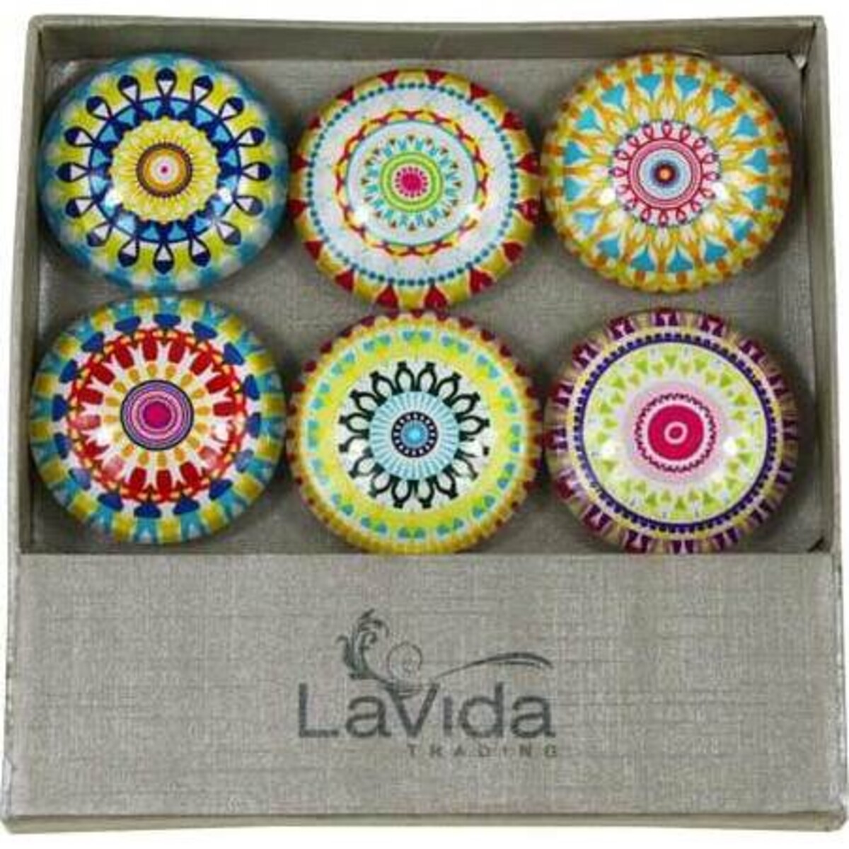 Lavida is forever experimenting with a variety of ideas when it comes to gifts and collectibles and this set of six gorgeously patterned glass orbs come with magnets fitted on them so also to allow then to be used in a variety of ways - as paperweight they would function great - while simply as a decor item , its colourful presence will cheer up that space - whichever way, the glass work is superior - and the design being intricate, one cannot but give it a second look. A lovely collectible for the table just to take away the monotony of mundane of everyday work.