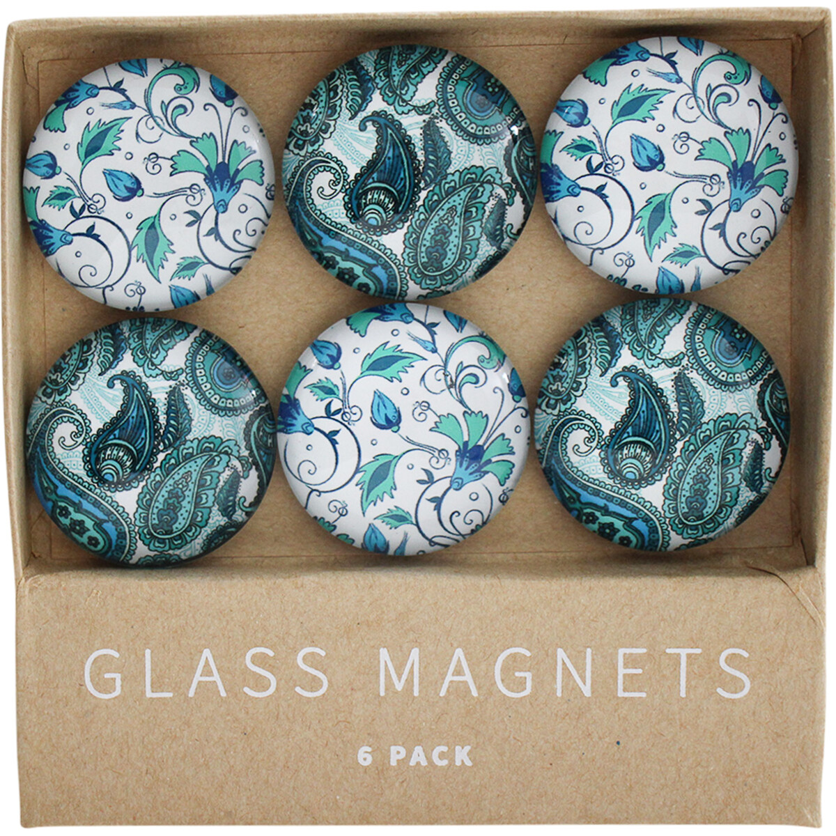 These set of handcrafted glass magnets with a design known as the "Persian pickles", can transport one's interior into an Oriental haven. The is a vintage paisley pattern with its pop of modern colours is an excellent choice of embellishment for metallic painted surfaces. Its crystal clear glass is correctly see-through so guests can admire the intricate design within. Likewise, its strong magnets can hold firmly 2-3 pieces of paper. Glass Magnets Mixed Paisley S/6 comes with a simple yet impressive package that further intensifies its eye-catching effect. Show off this vintage collection on the refrigerator and magnetic board surfaces.