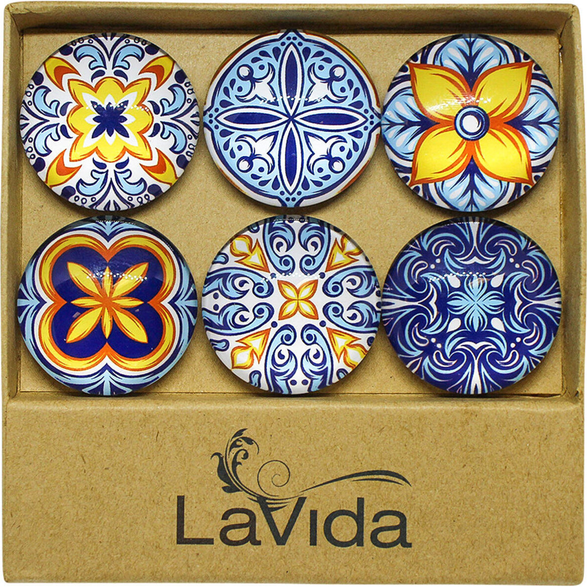 Change the very look of a dull looking glass frame or a picture frame-add the zest of colour and pattern to that dull looking metal door or the fridge door and what will come to your aid to do so is this fabulous set of six magnets made of very high quality clear glass and fitted with a sturdy magnet at the back to help it cling on tight to metal surfaces.