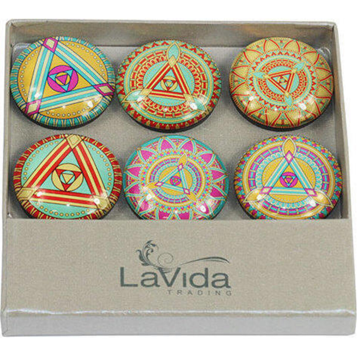 Bright, focused and centred around the job of making a space come alive with the beauty of colours and patterns, this lovely set of glass magnets makes even the dullest of spaces liven up with colours and designs. It comes neatly packed in a box so that its varied colours can create a diverse imagery of vibrancy and add what it surely is focused on. The baubles are made from hard clear glass that allows the picture to be distortion free and thus the clarity of the design and pattern looks alive and filled with so much brightness. The quality of magnets allows it to firmly hold on to the surface on which it has been placed. Add a simple piece of artistry to the spaces where you place them and this set in particular host a design that has the triumvirate of our origin - and ancient design reused in a superb new way to lend a spiritual tilt to the pace. Place it on pinup board and the likes or simply dress up the fridge door and you will find it gracing the space with all its eclecticism. Each of these baubles are 3.7 cm in diameter making the picture held within clear and visible and very impactful.