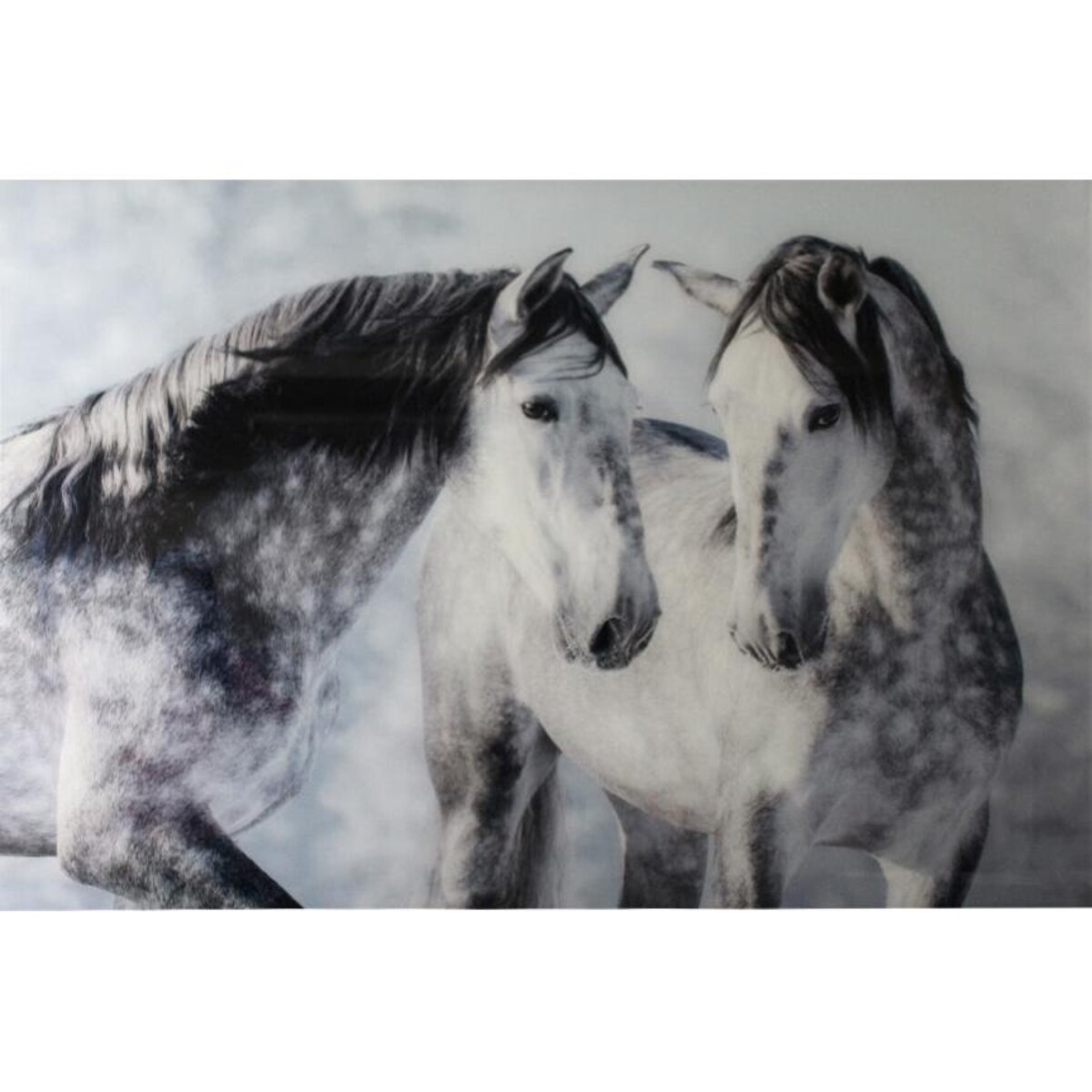 Be it colonial style classic look home or one that dedicates itself to the love for nature-this wonderfully created print on glass featuring the two horses can melt your heart with its absolute beauty. The shape and form, the nuances of colours, and the delicate features of the heads and mane bring to fore an artist?s mastery over form -the perfect colour resolution on softest of hues ? the predominance of whites and greys and taupe makes this a neutral coloured art piece that could blend in well with all kinds of décor ideas-especially suited of course to a beach look home because here the feeling of sand and wind is quite apparent. It will make its presence felt with its size as well at 120 cm length and 80 cm width, making it a grand entrée into your spaces -be it the main wall of the living room or the wall above the sideboard or fireplace. Handsome and impactful-the precious printing on glass takes this art piece way above others.