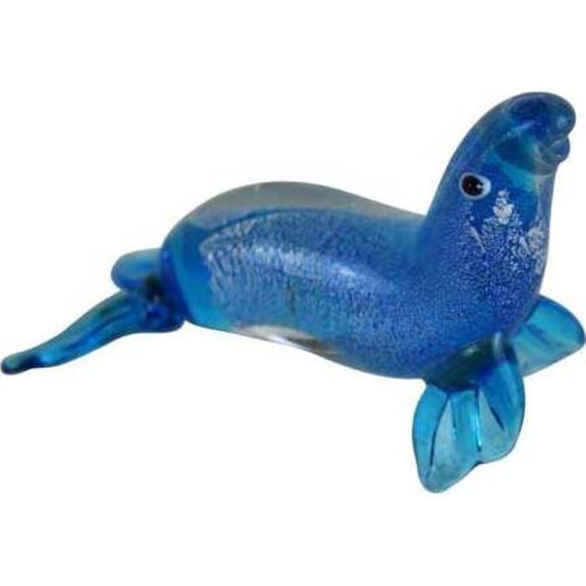 Glass Seal Blue Mini features a seal of blue colour constructed entirely of glass. The artistic piece measures 7x3x4 cm and depicts the sea animal lying flat with the head facing upwards. It would look great resting on marble within a container or next to a fountain and other aquatic environments. As well, this fabulous work of art may grace the centre of a reception area, balcony or hallway to introduce an exotic sense within the interiors. One may acquire Glass Seal Blue Mini for presentation as a souvenir to friends and family members at special commemorative functions such as anniversaries and other occasions.
