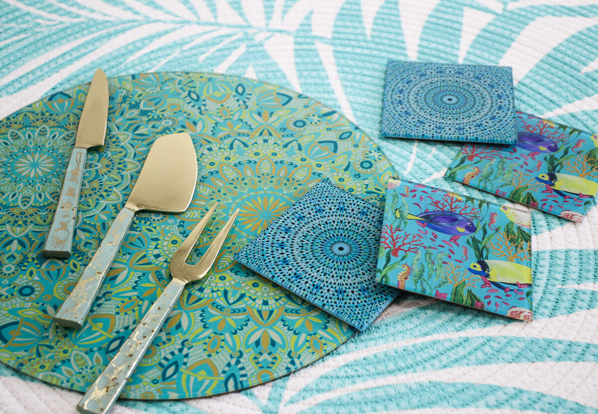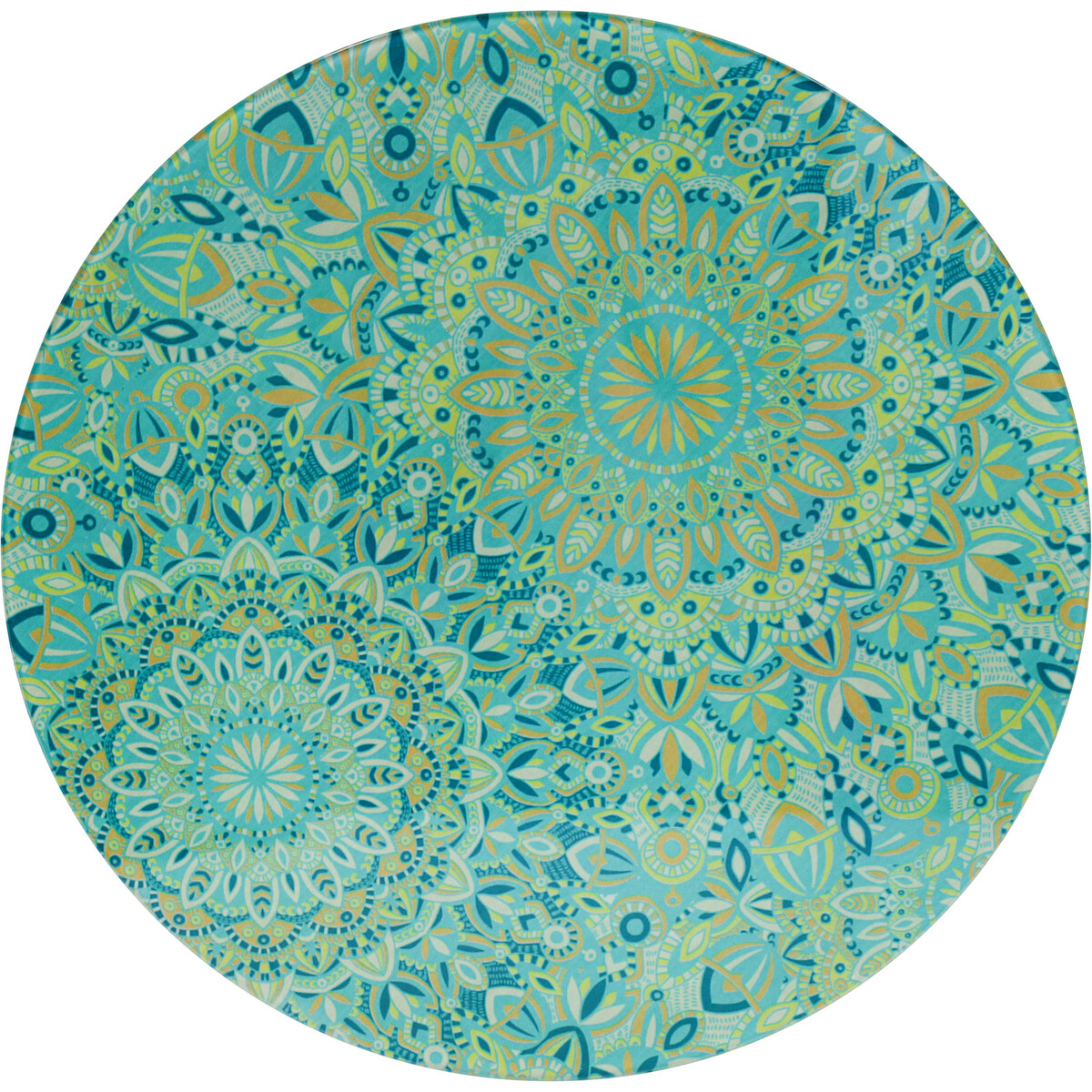 The Glass Trivet Lrg Carnival is one of those pieces that stops people in their tracks. It’s got this vibrant mandala design set on tempered glass, bursting with blues and greens - really lively stuff that catches the light and feels a bit special. We tend to see customers drawn to it as both practical kitchen gear and as something they want to display when it’s not in use. Sometimes you can barely tell if people are buying it because they need a trivet, or just because they love the pattern.