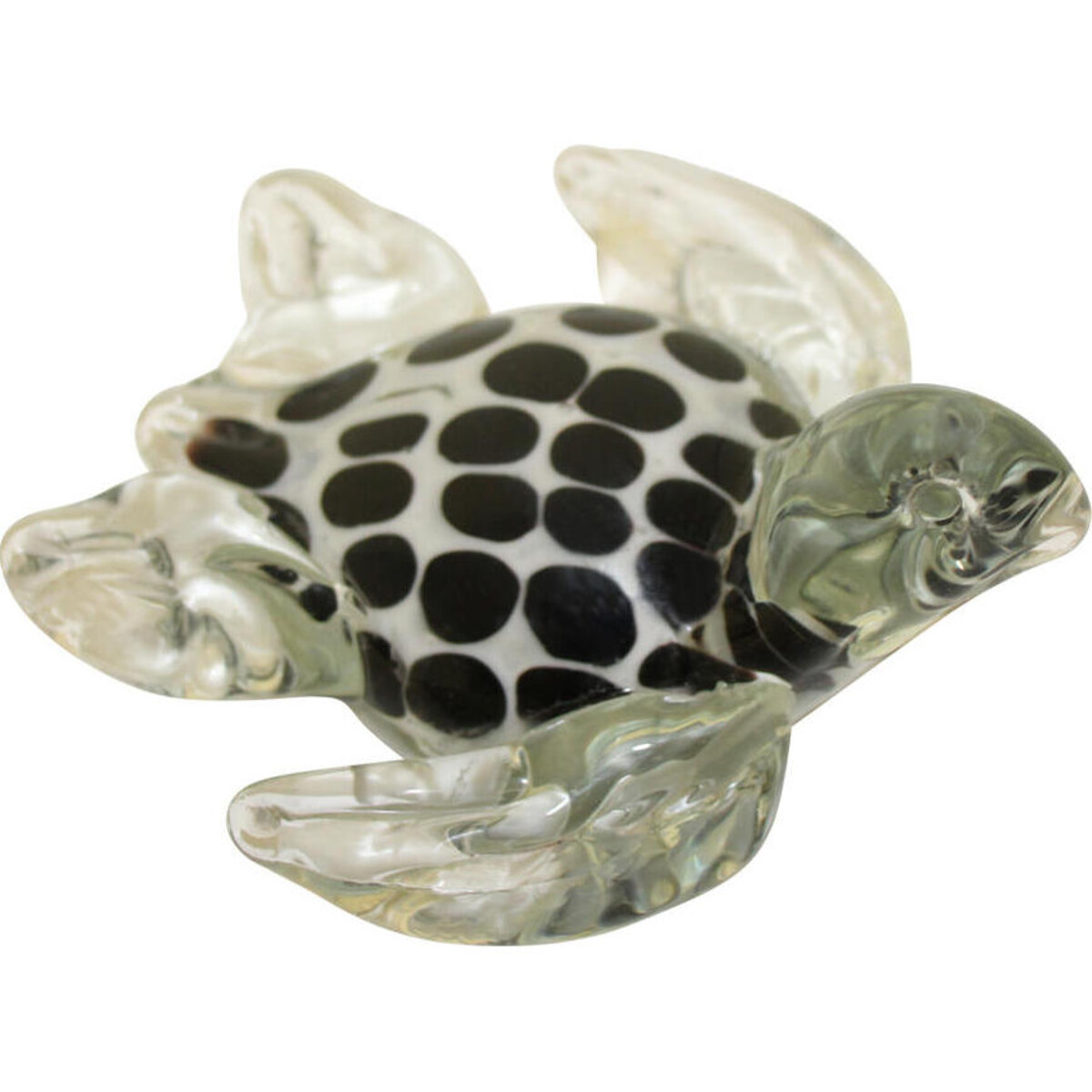 You would have seen them in multitudes, some tiny, some rather large turtles and tortoises never fail to make their mark when it comes to their fascinating lives. It is one of those reptiles whose life in the water is replete with many mysteries. Bring this into your spaces with the help of this speckled in black and clear glass figurine, handcrafted and created with very minute kind of detailing. Use it like you would any accent piece, placing it atop corner tables, under lamps, on the mantle the book shelf or your own study desk and let its pretty little smooth body take away the boredom of the space. The turtle is all of 10 cm in length and width and makes for a little escape route into the world of these pretty little mysterious creatures that abound in the marine world. The glittering glass body will look especially appealing when in the company of a few more such creatures from the water kingdom. Go on - begin that figurine collection you always wanted to!