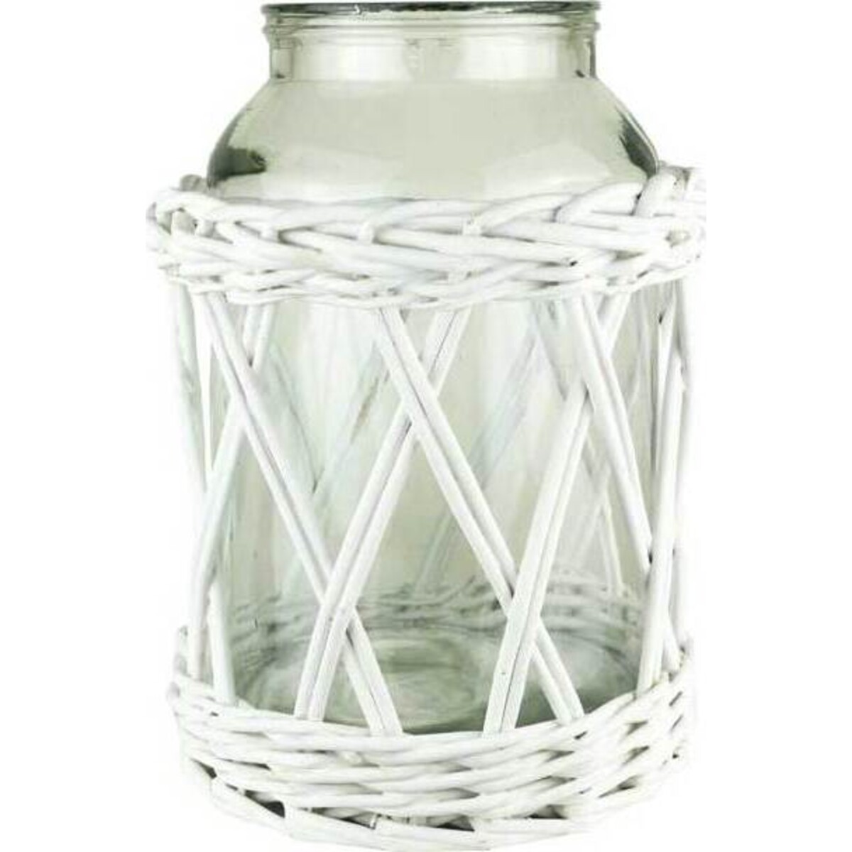 Bringing alive the countryside and farm feeling is this glass jar ensconced in a willow woven jacket that seems to be sitting round it as if protecting its fragile frame. About 27 cm in height, the glass jar looks more like a mason jar that has been given casing of willow. The glass used is clear and anything kept inside it will be visible which makes it quite suitable to be a candleholder as well. One would not shy away from using it as a container to serve juices from or if one wants to even use it like any other flower vase. It will grab the fancy of many for its blend of different material and its robust design. A great place also to stick in fresh cut herbs in water to keep them looking fresh for longer. Any space in the interior will be a great place to display it as it has on its side the versatility that would bend in with all kinds if interiors. The container is easy to clean and can be sued both indoors as well as outdoors in lot of different ways.