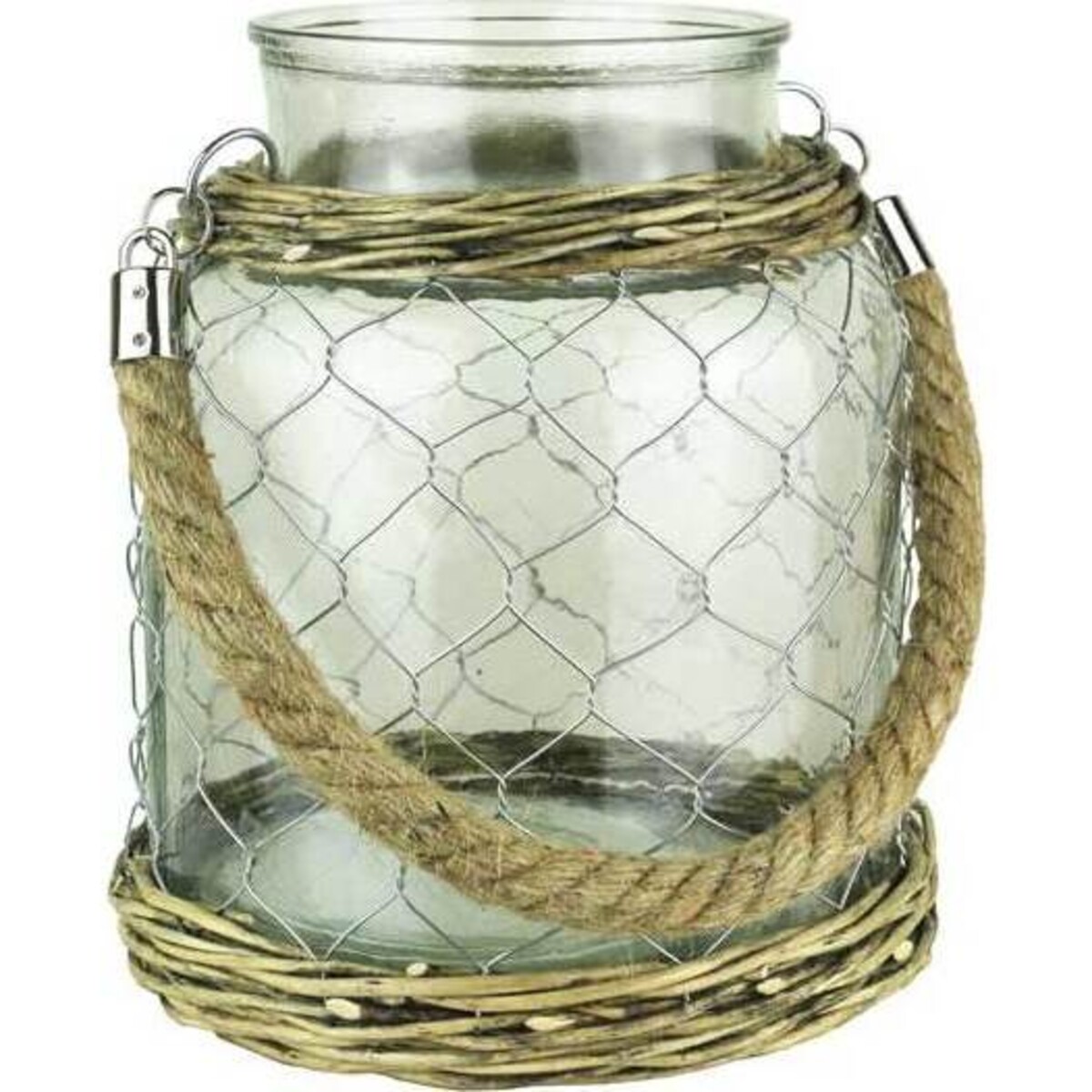 The 21 cm high jar has a wide mouth and a base that sits on a willow basket that looks like a nest. The handles are crafted from rope and the rim too has this ring of willow that coordinates perfectly with the base. The chicken wire clinging around the entire glass jar makes it looks like natural casing. It is in the uniqueness of design and the use of unusual material that Lavida has created quite a coup in designs for the home. Could be used in several ways - maybe like a candle holder, or as place to display fresh blooms, or simply as decor item along with fresh green in some corner. One could stick in some favourite shells and stones collected from many travels and make it look unique with their colours peeping through the glass interior. For those who entertain people most frequently, quaint little decor items hold importance, as they lend spaces an air of freshness.